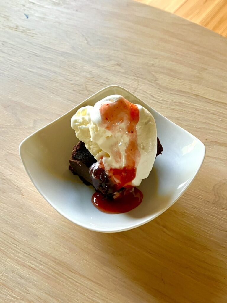 きのこのシチューと、デザートにぶどうゼリーもついた