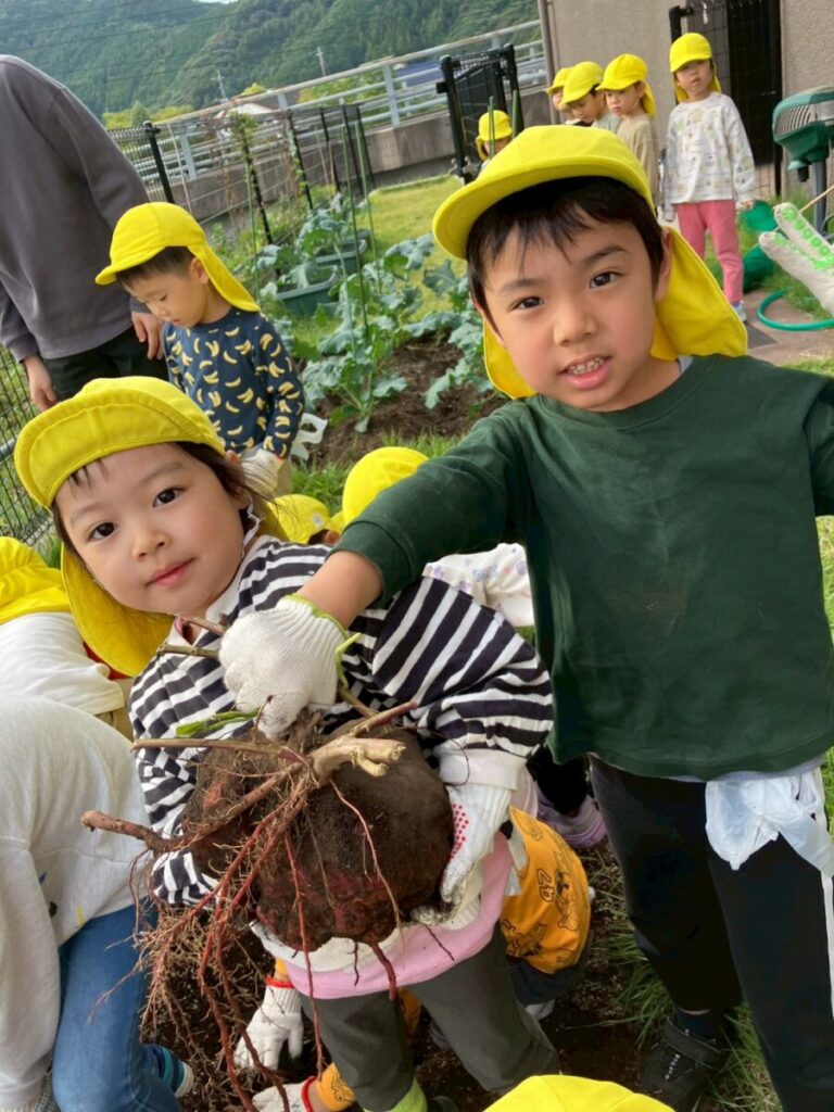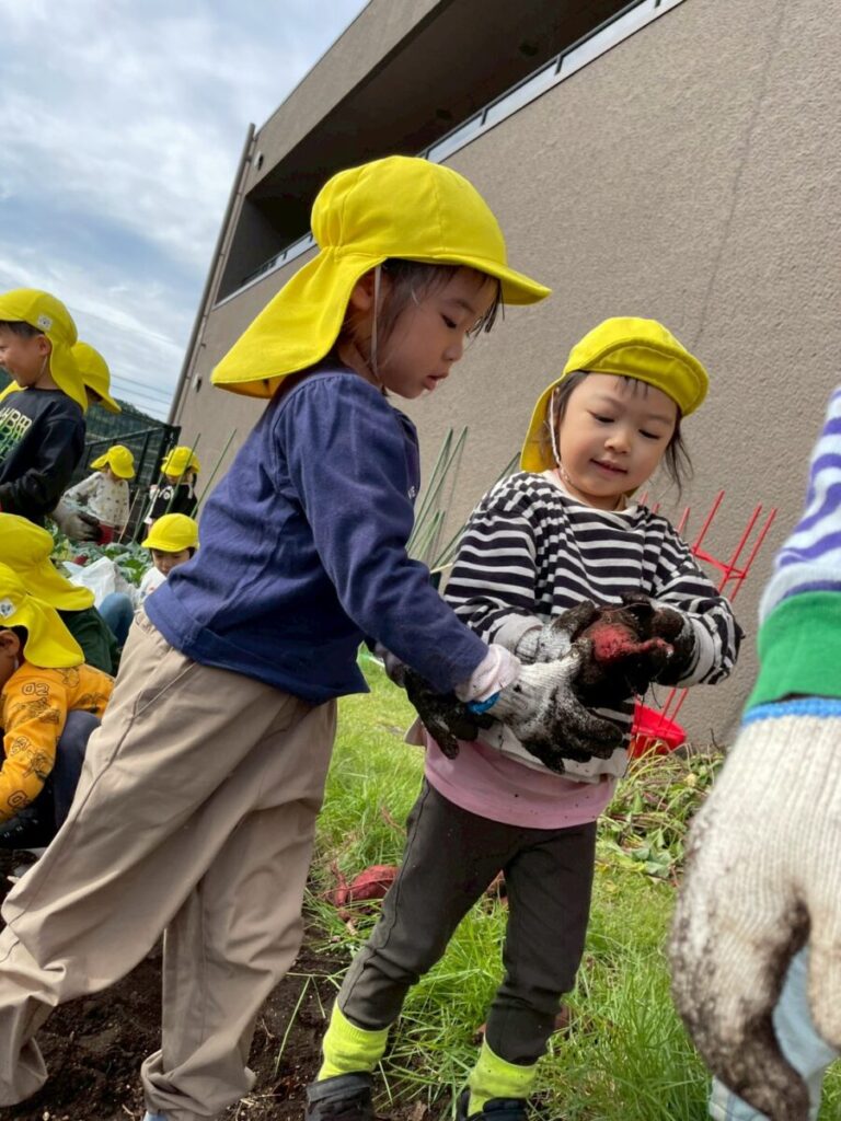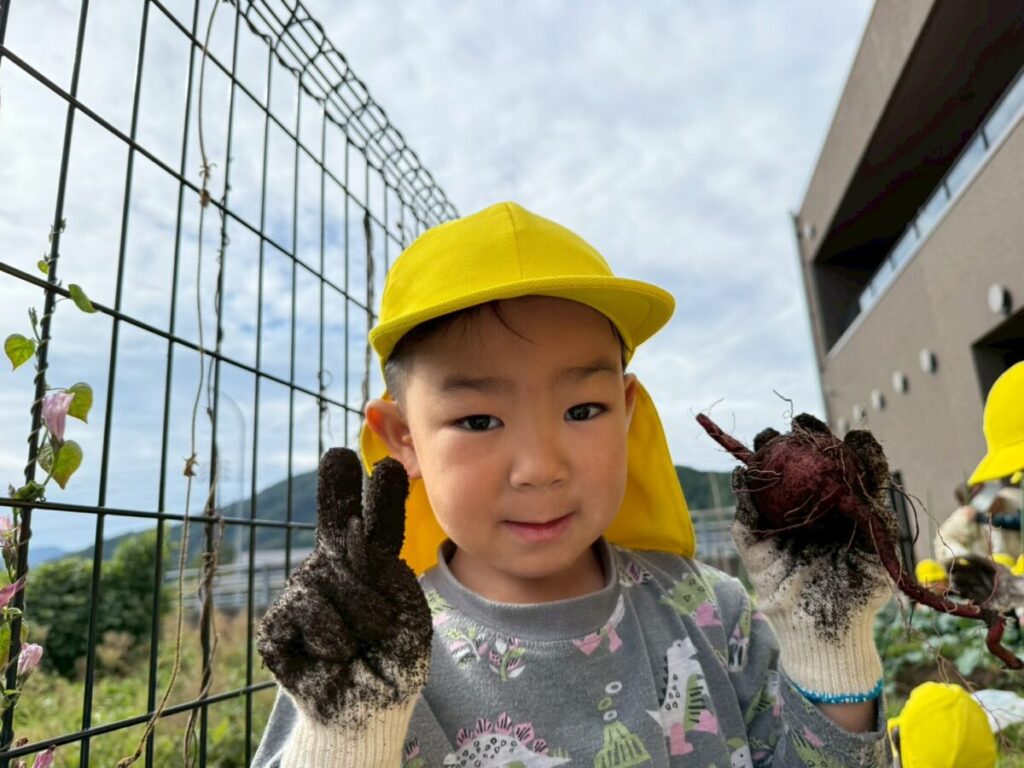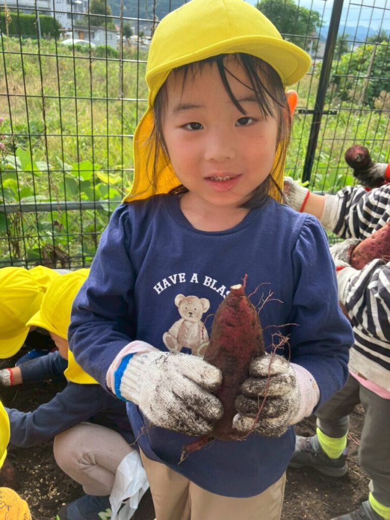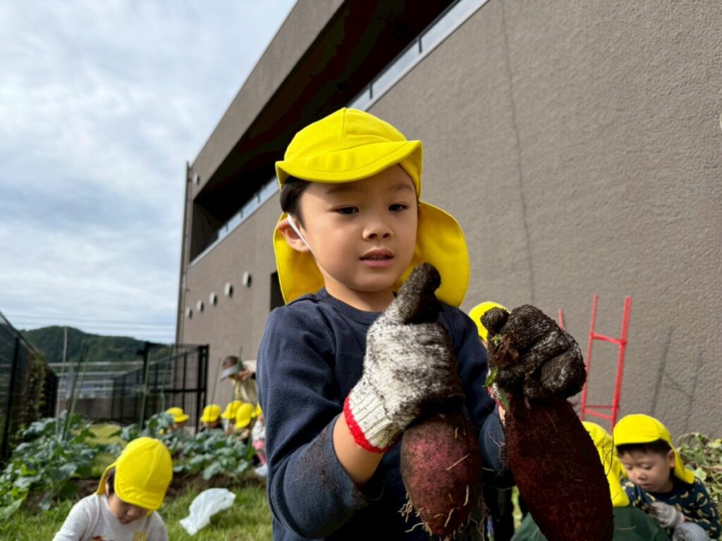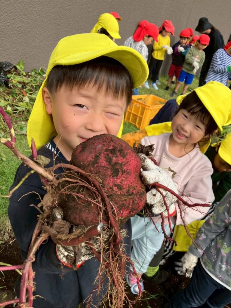 お芋が大きくてなかなか取れません💦周りの土を掘りながらお友達と力を合わせてお芋を収穫していました!
