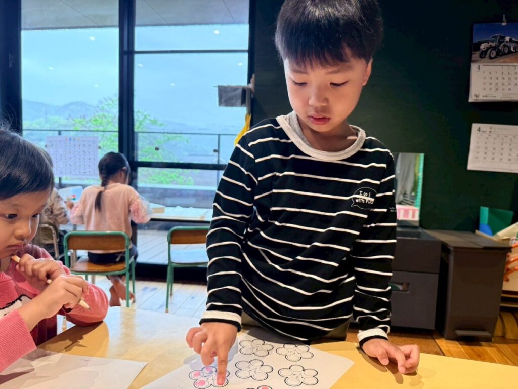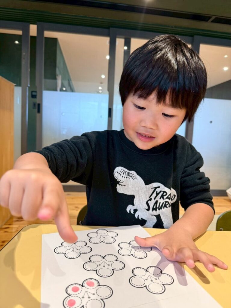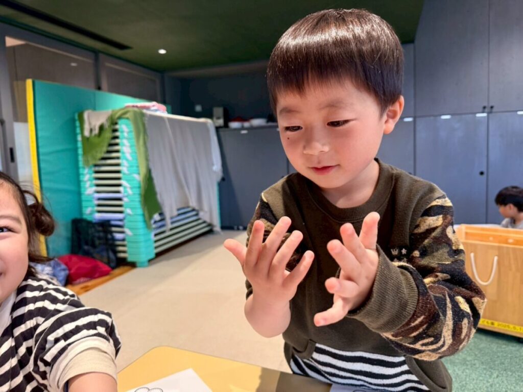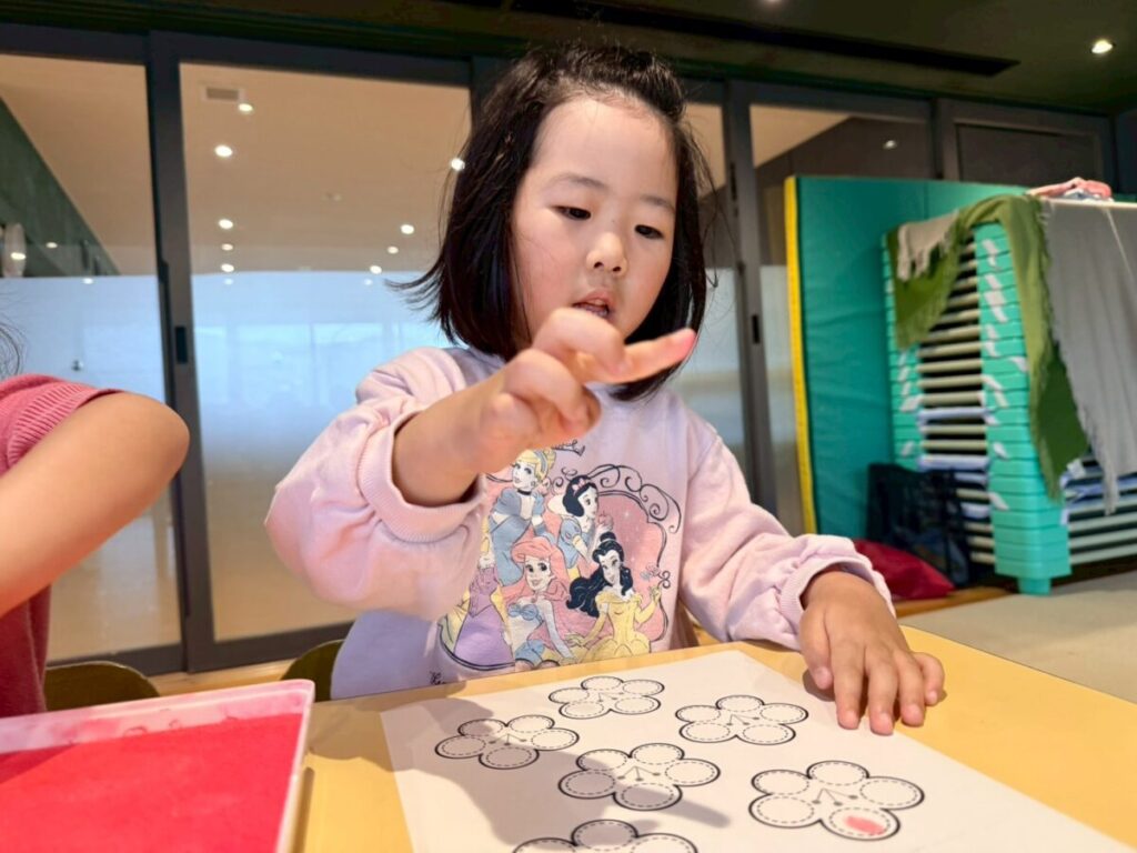 指スタンプを終えると、「どんな模様かな?」と自分の指紋を見ていました✨