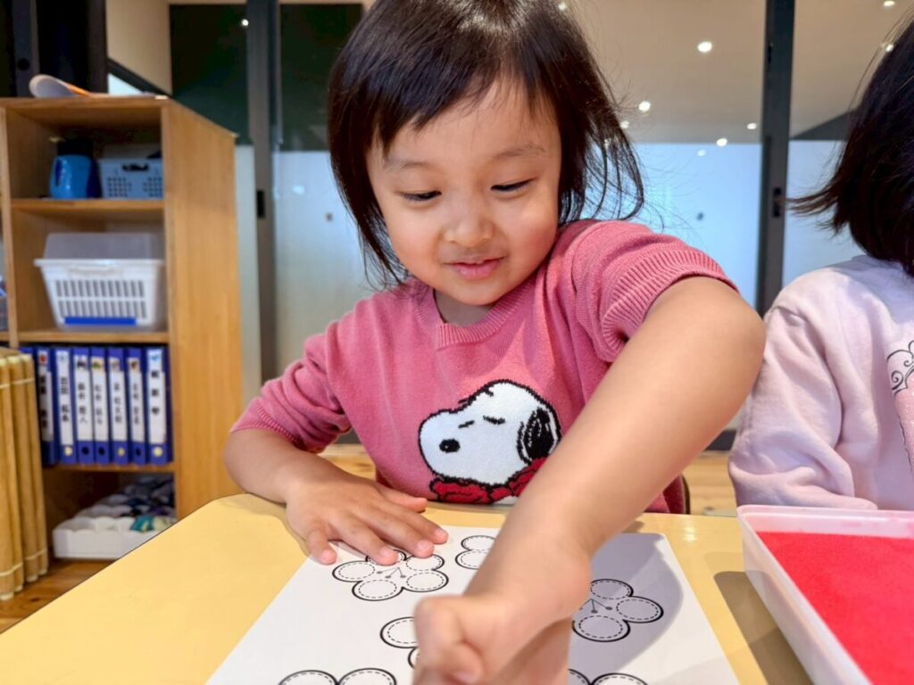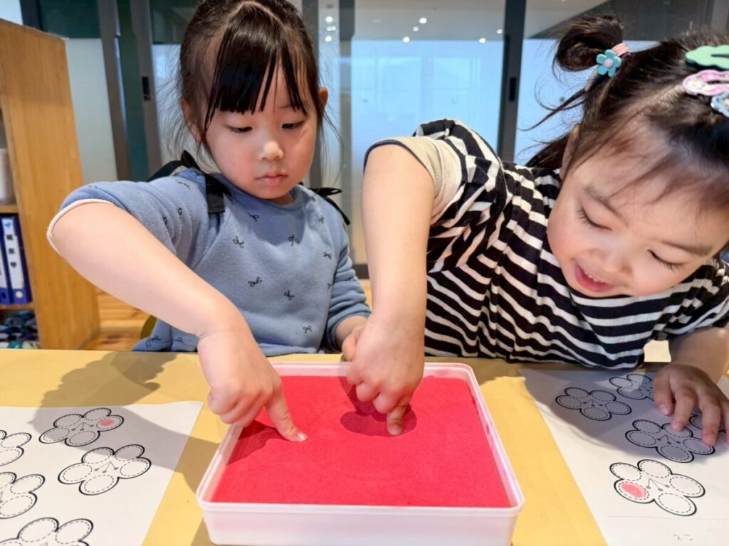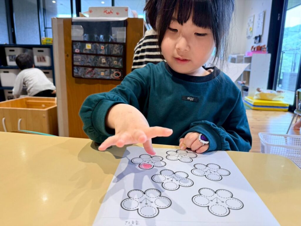 なかには、指紋の上に指紋を重ね・・・お花の色塗りを楽しんでいたお友達も(笑)