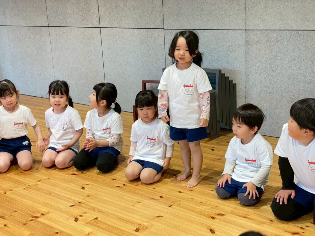 今日はみんなが楽しみにしていた遠足!でしたが、あいにくの天気だったのでホールへ行きレクリエーションを楽しみました♪ 朝から園Tシャツを着て楽しみにしていたこどもたちの姿が見られました☺