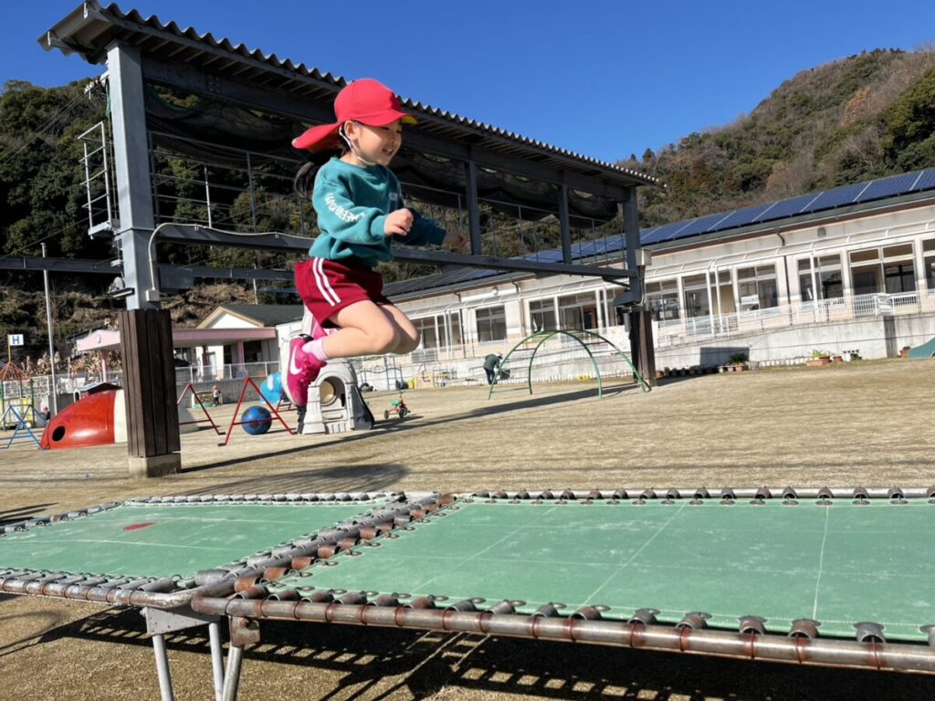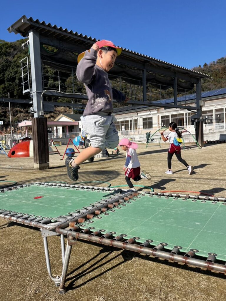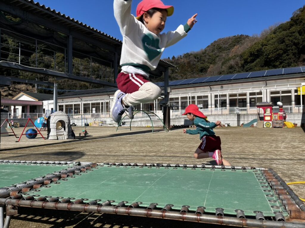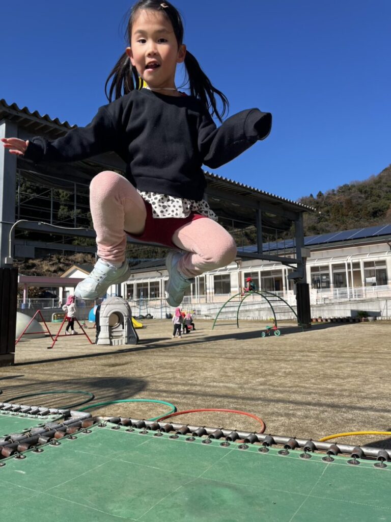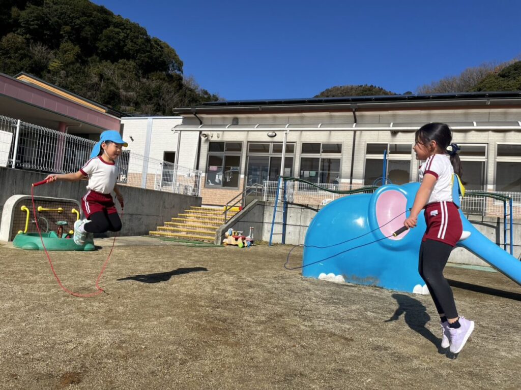 二重跳びの練習中!赤い縄跳びを持っているお友達が先生となり教えてくれていました😊頑張れ~!