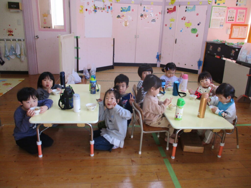 子ども達はもちつきの後は楽しみにしていたお弁当を嬉しそうに喜んで食べていました💖