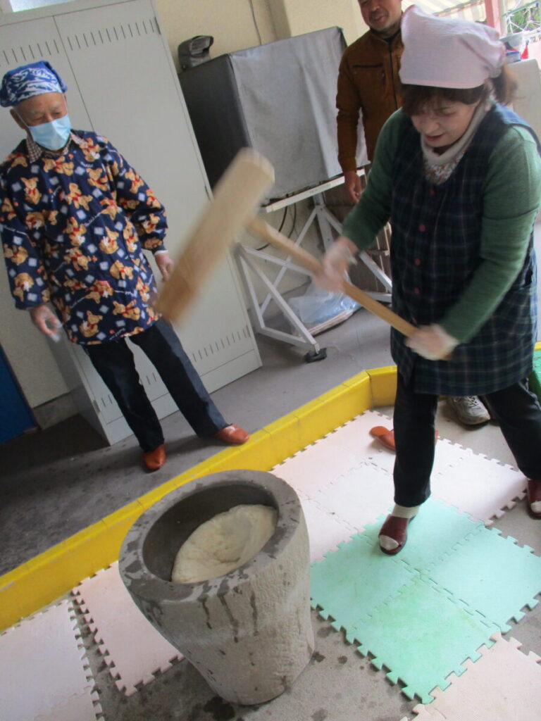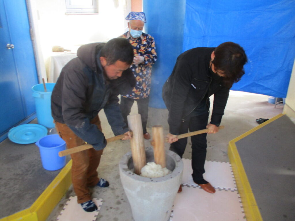 地域の方の力強い応援のおかげでおいしそうなお餅がつきあがりました✨