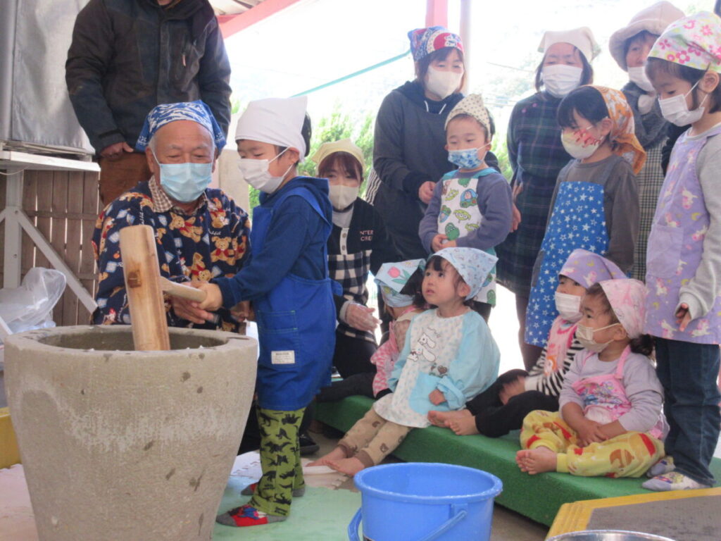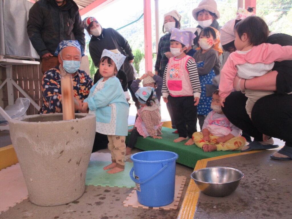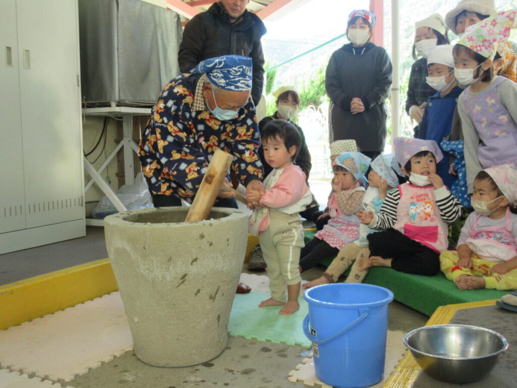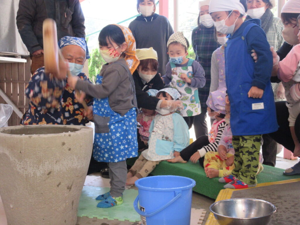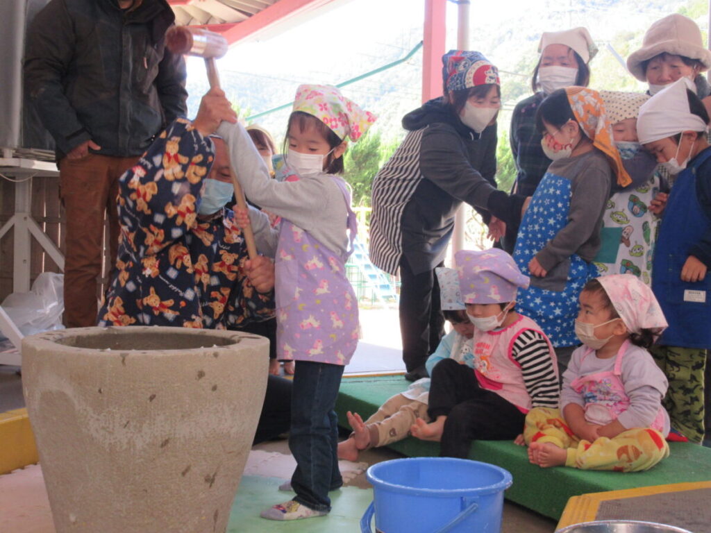 臼と杵を使ってもちつきをされるご家庭や体験する機会が減った中、今日の体験は子ども達にとっても貴重な経験になったことと思います。