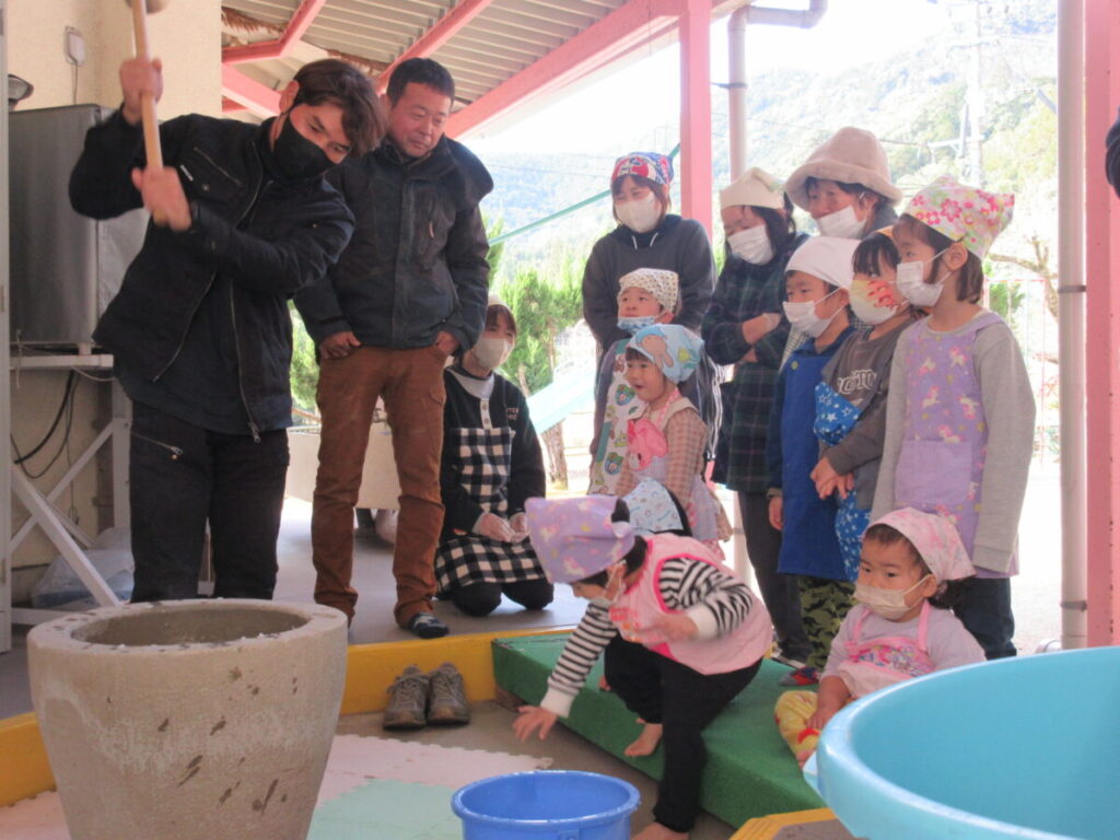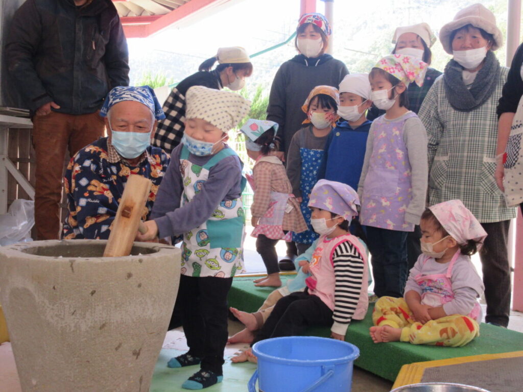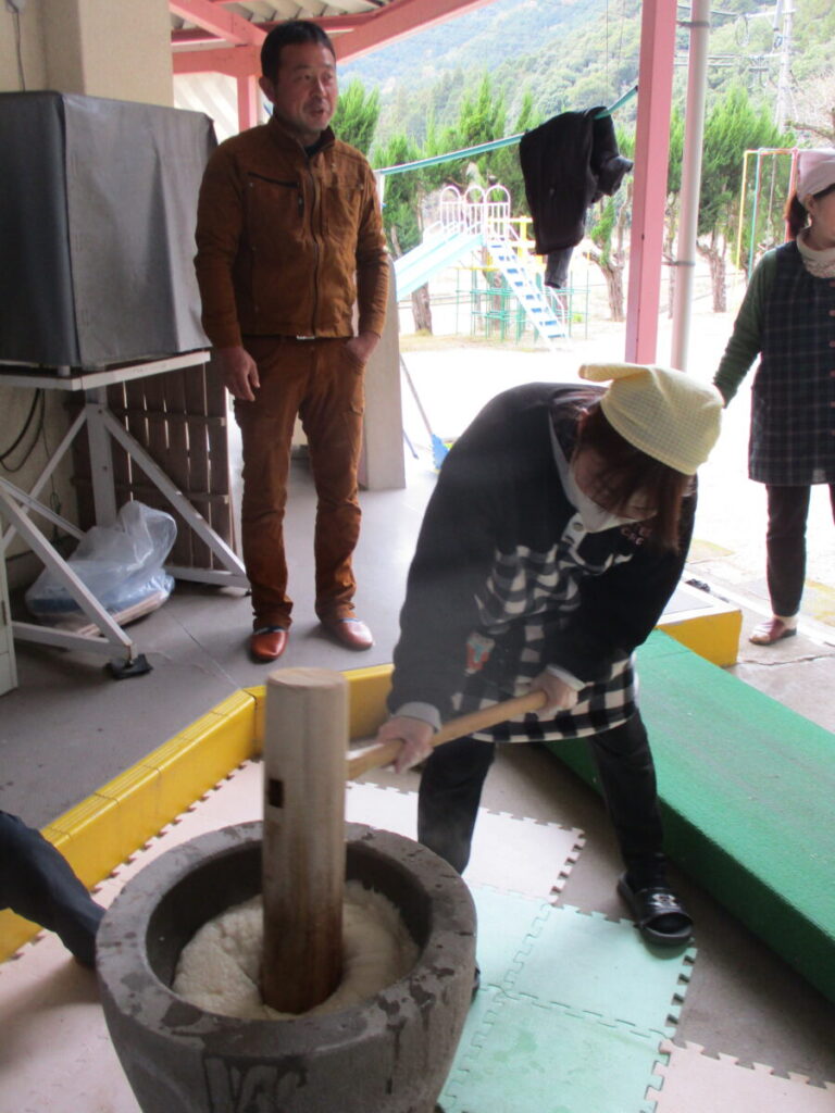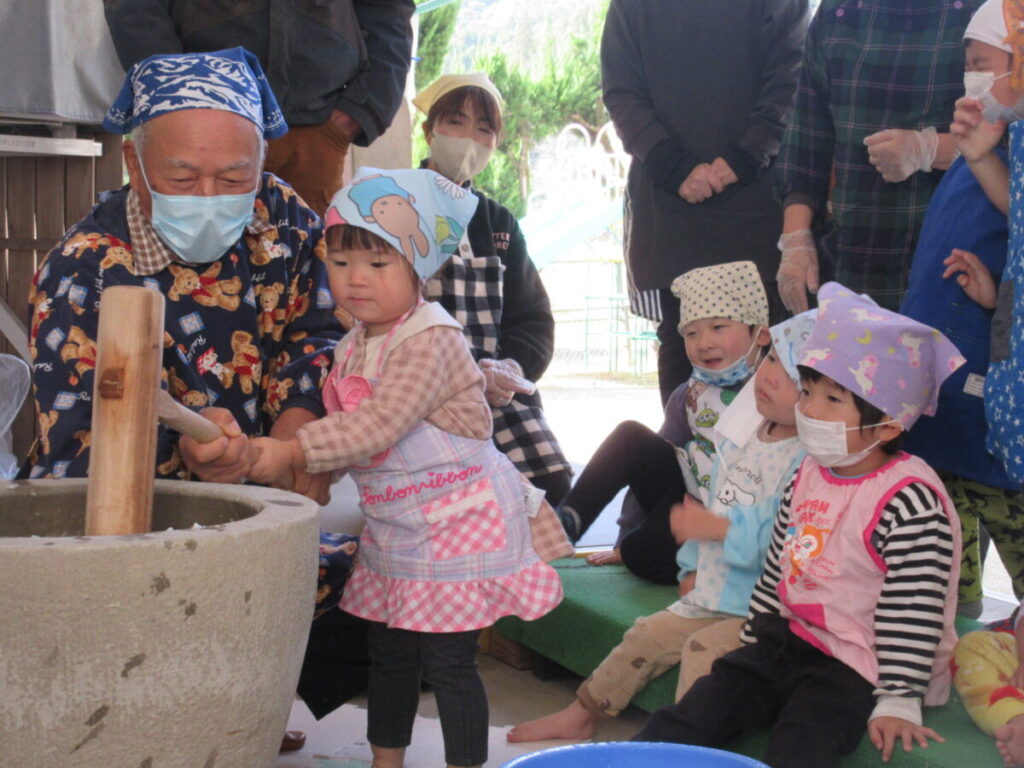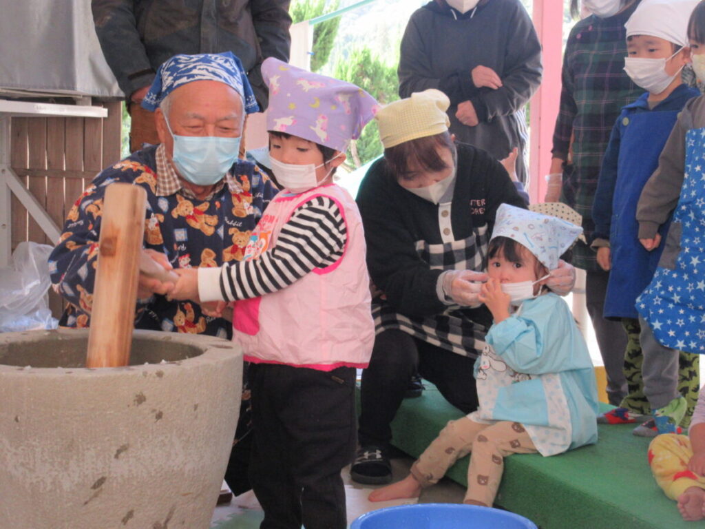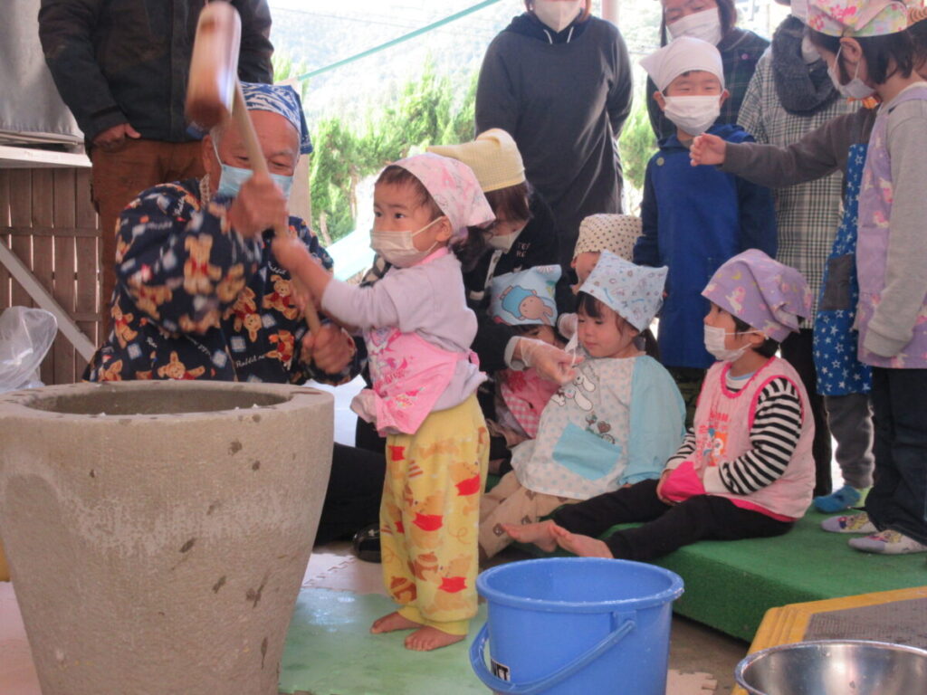 臼と杵を使ってもちつきをされるご家庭や体験する機会が減った中、今日の体験は子ども達にとっても貴重な経験になったことと思います。