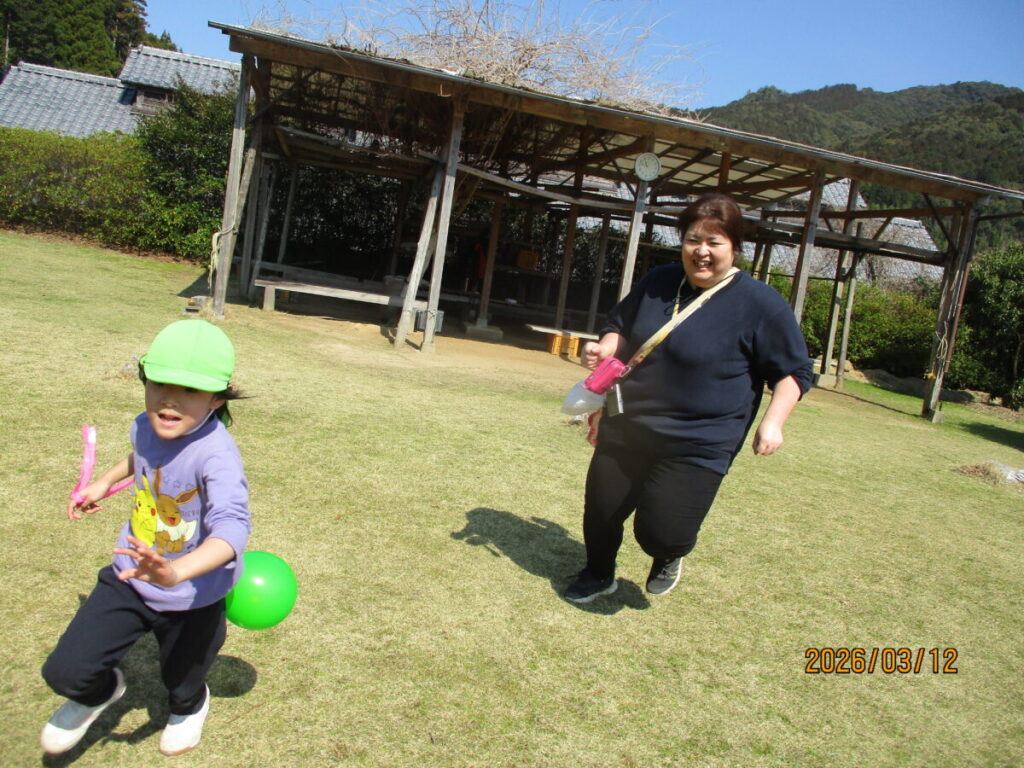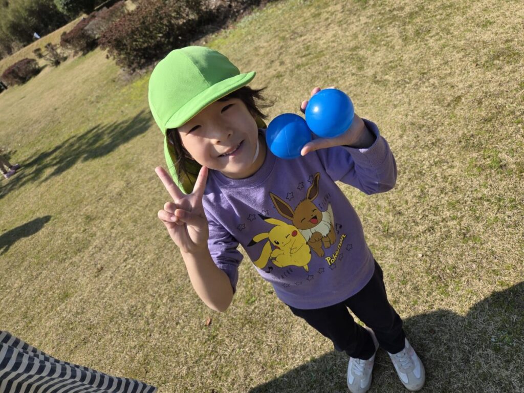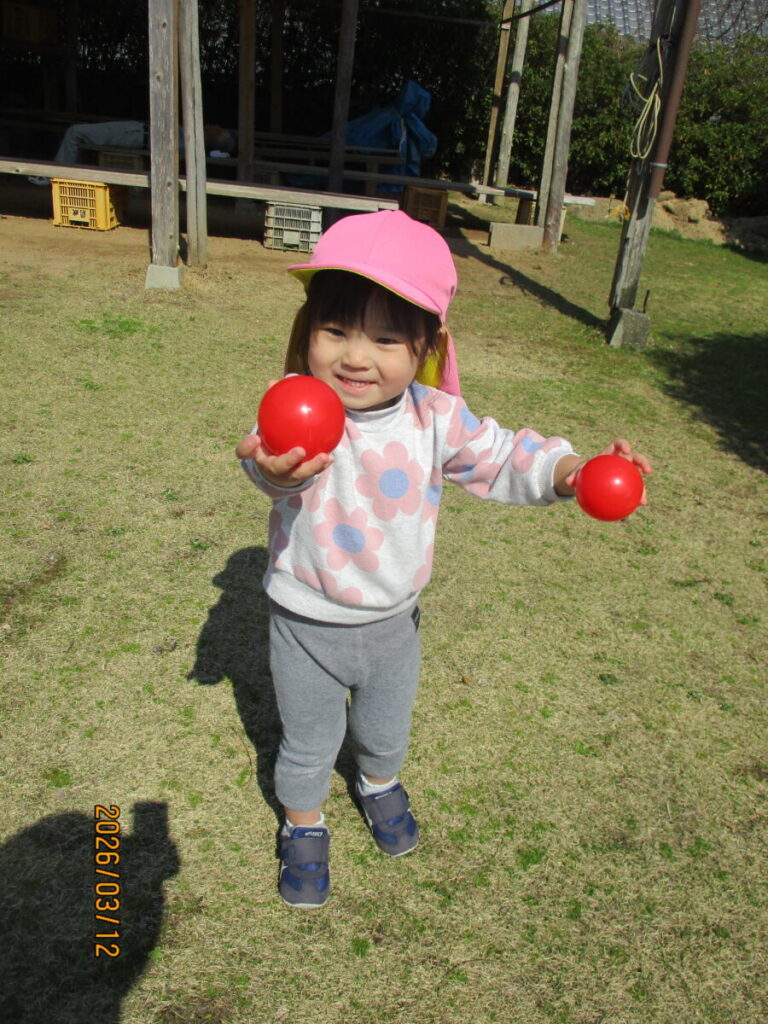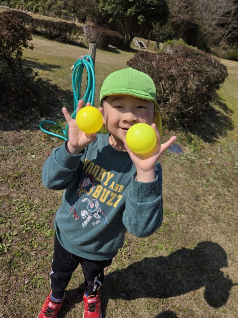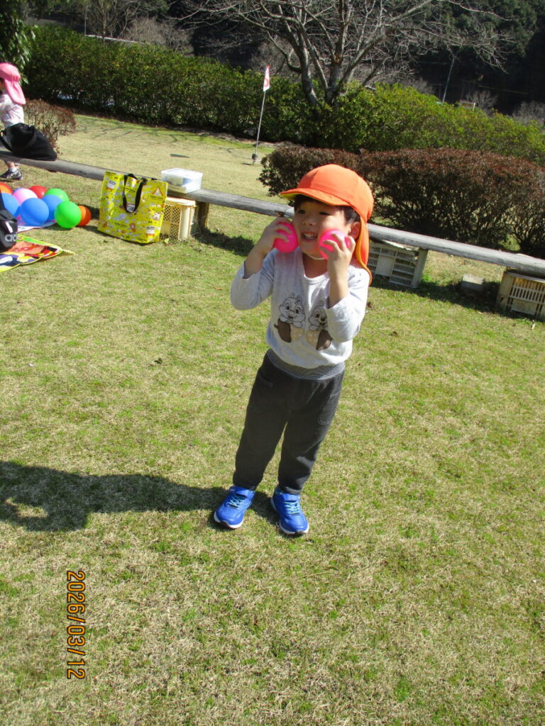 広場で、風船しっぽ取りとボール宝探しを楽しみました。