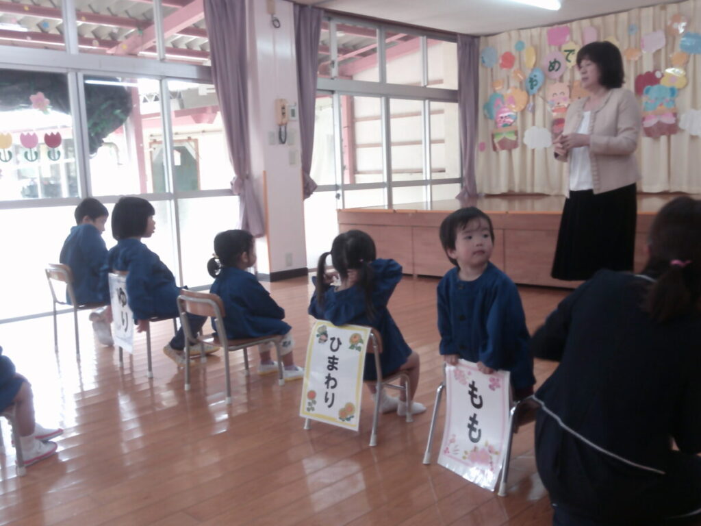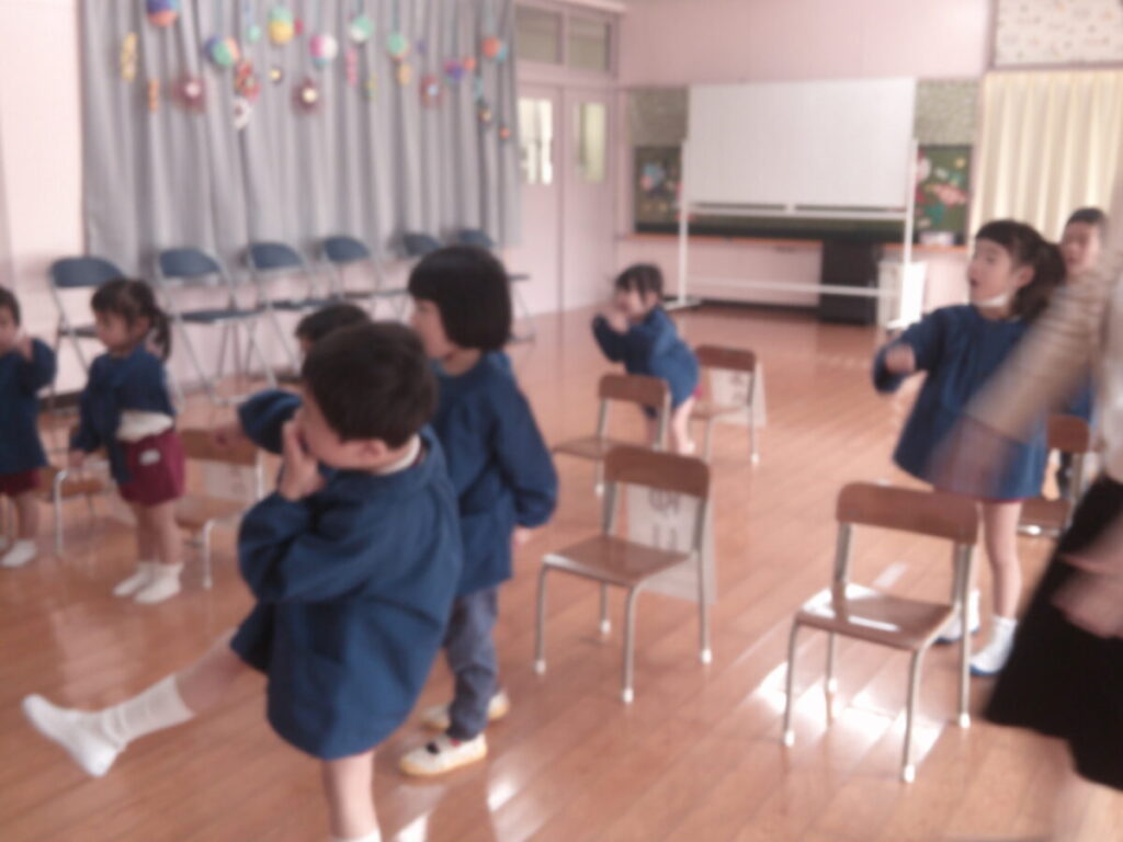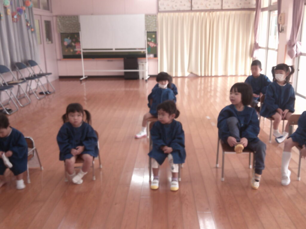 初めに園長先生の話を聞いたり、歌を歌ったりしました。