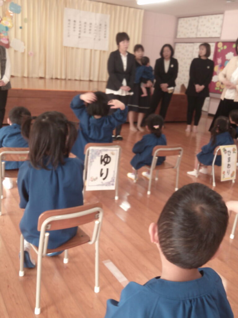 園長先生から先生方の紹介や、今年度から新しく来られた先生の紹介がありました。知っている先生の名前は、子どもたちが「〇〇せんせ~い♡」とかわいく教えてくれました♪