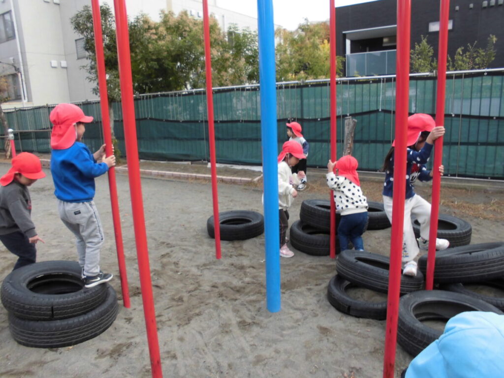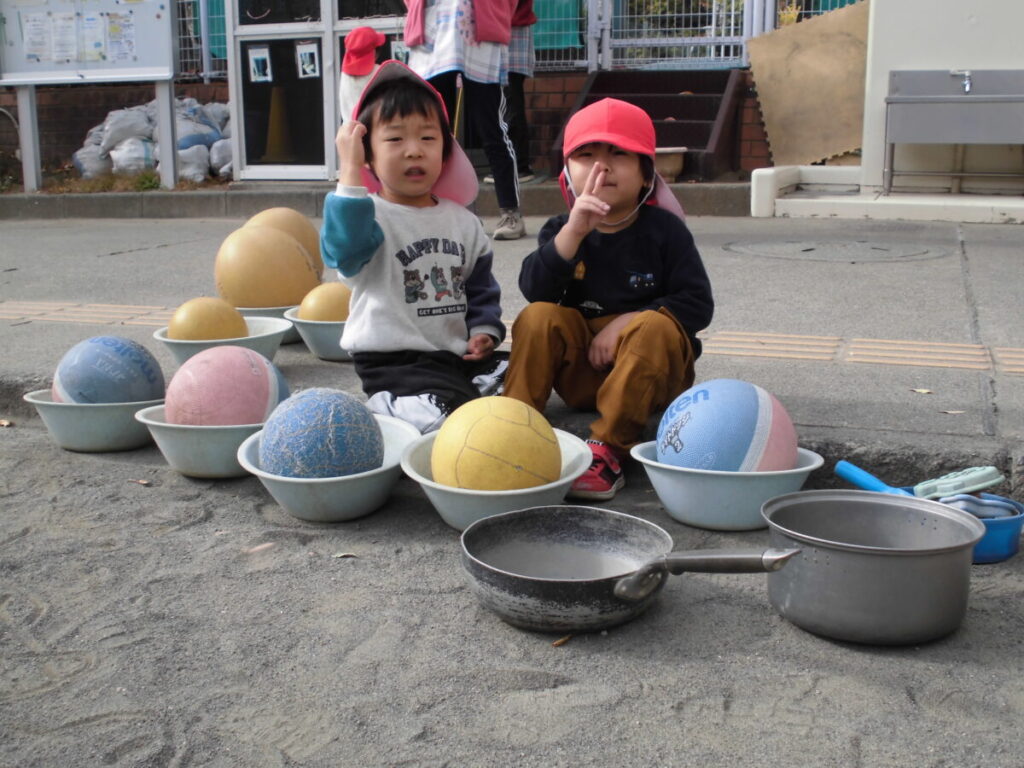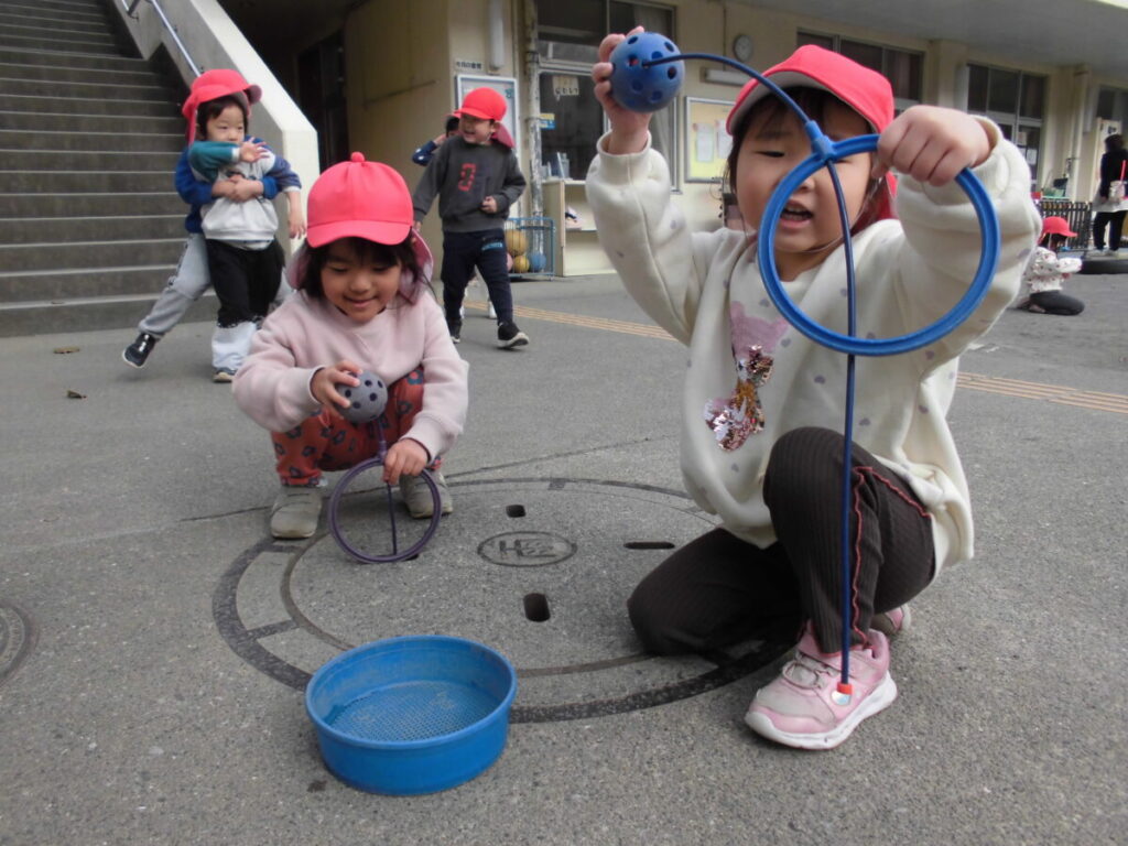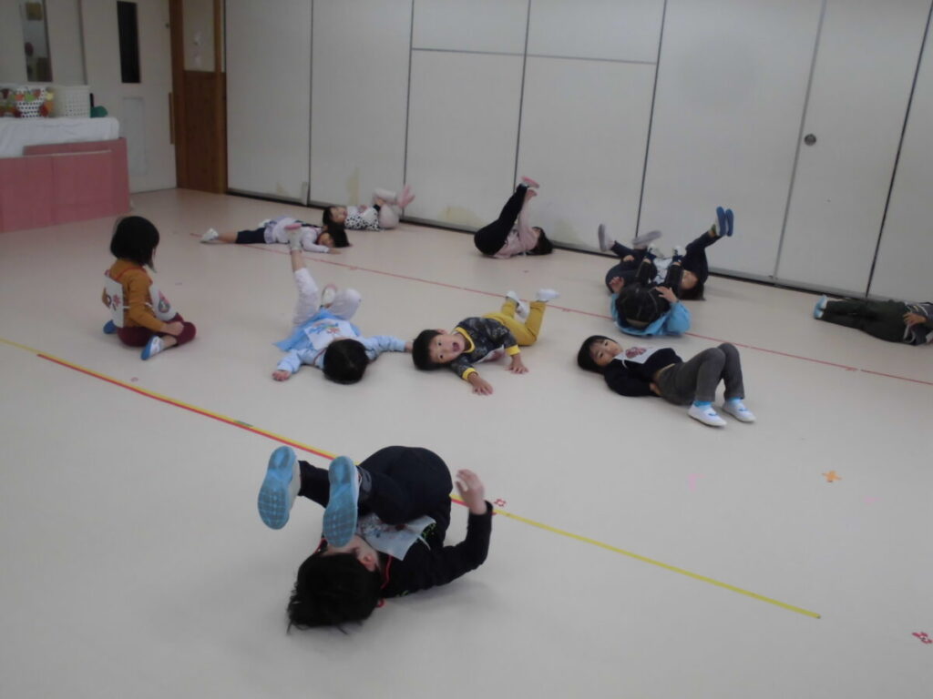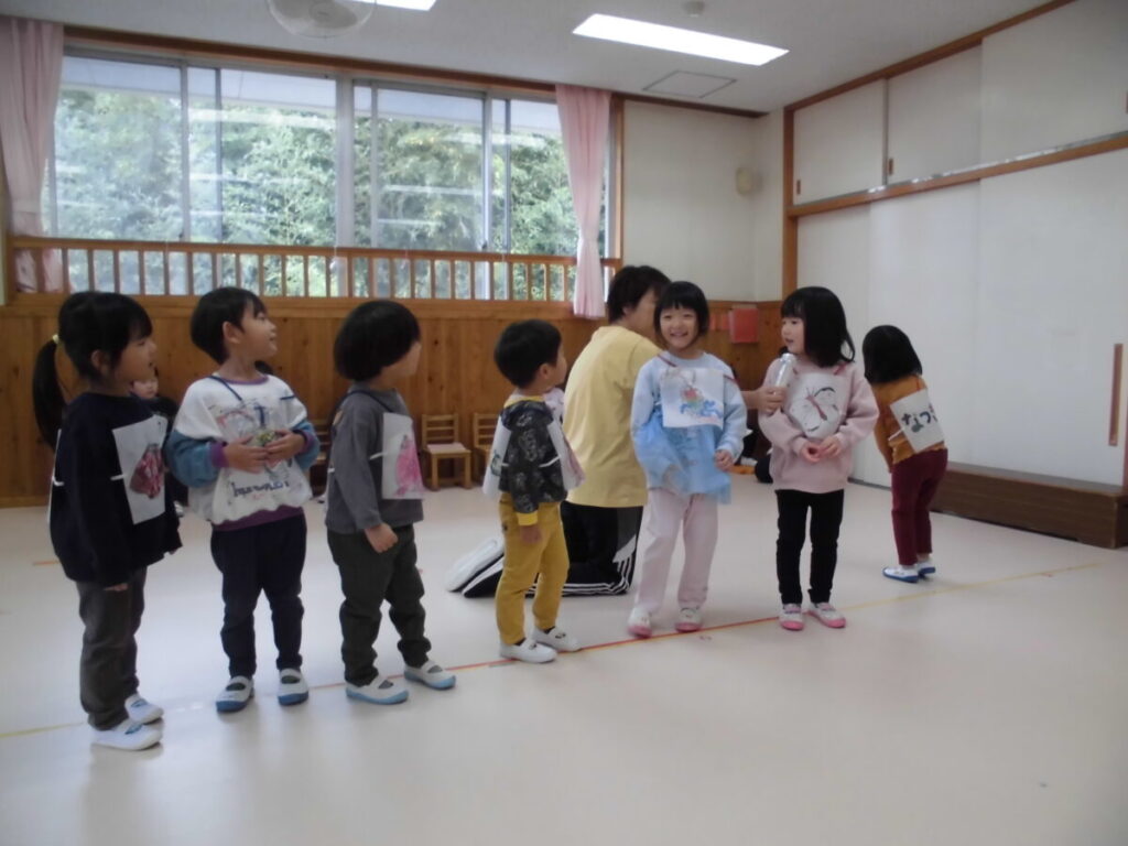外遊びのあとにホールでおたのしみ会ごっこ…