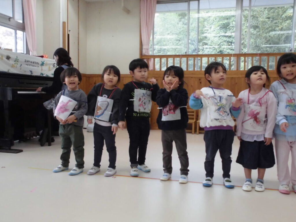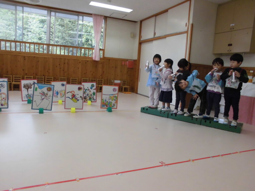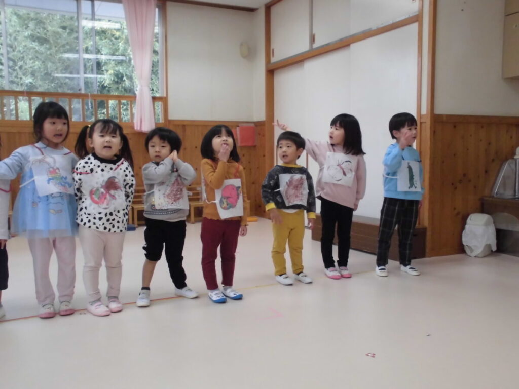 おたのしみ会を通じて、みんなで楽しむことや踊ったり、うたったりする楽しさを味わい、大きく成長した子ども達です。ドキドキしているお友だちにそっと手を差しのべる姿もあり、優しい気持ちも育ちました。これからもぺんぎん組さんは遊びを通して大きく成長していくと思います。楽しみです。