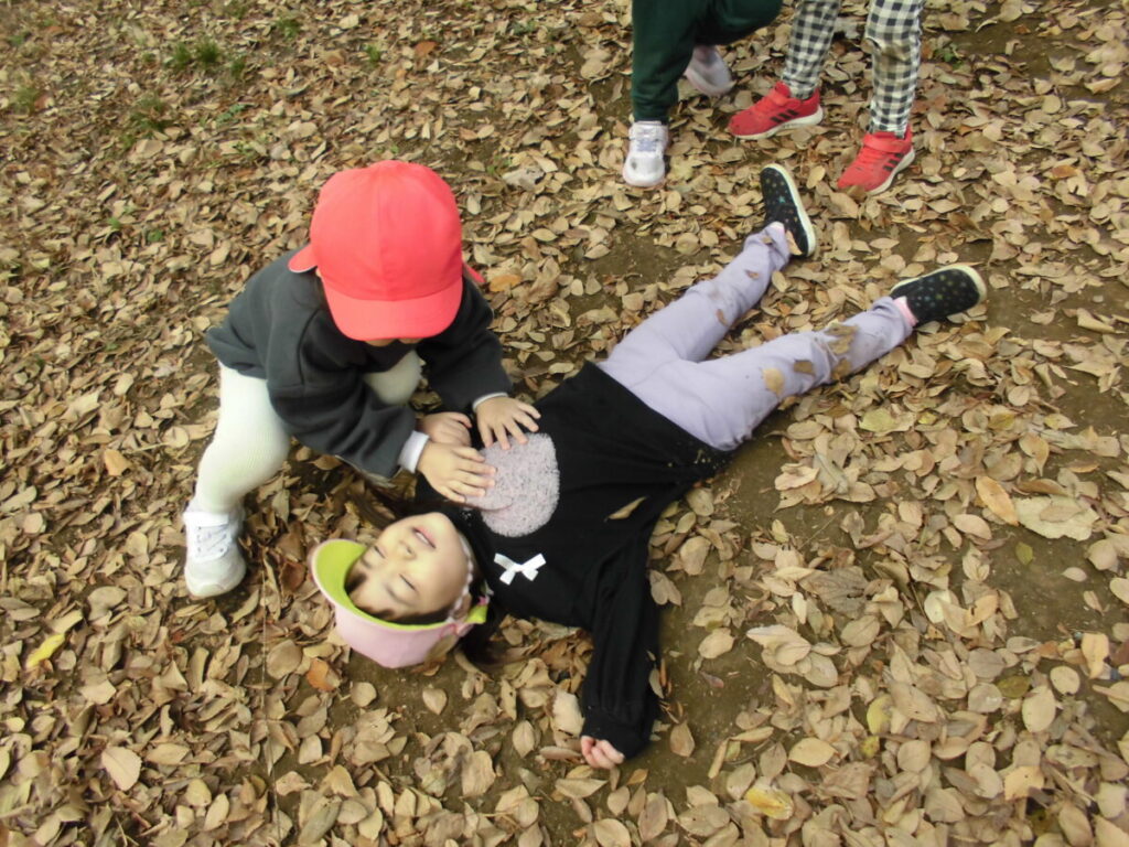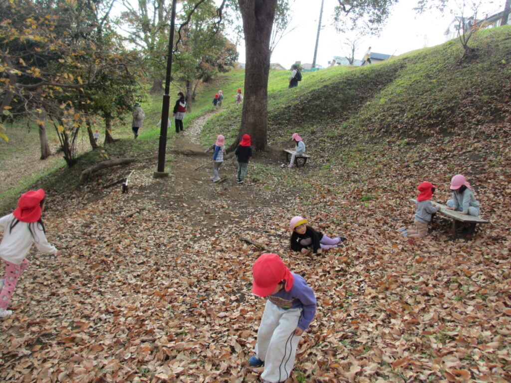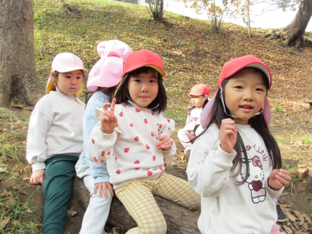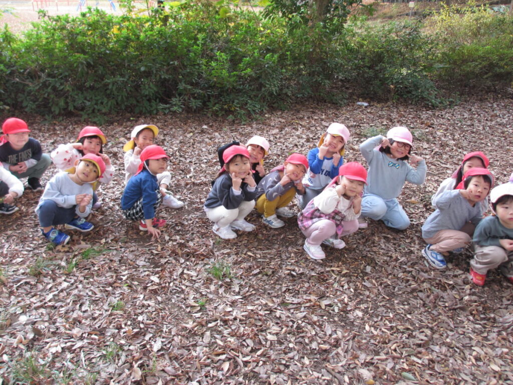 12月とは思えない暖かい日差しの中、いるか組さんぺんぎん組さん一緒に南公園へ行ってきましたよ。今日はなんと、「はなぞの まりちゃん」という特別ゲストも一緒でした。まりちゃんがどこにいるかは探してみてくださいね。