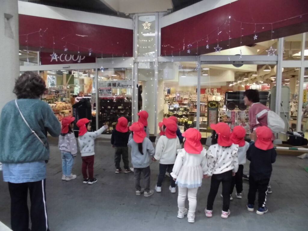 公園に行く前に商店街を通り、お店のイルミネーションを見に行きました!夕方にライトアップされるのですが…なんと!特別にライトをつけてくれました😊