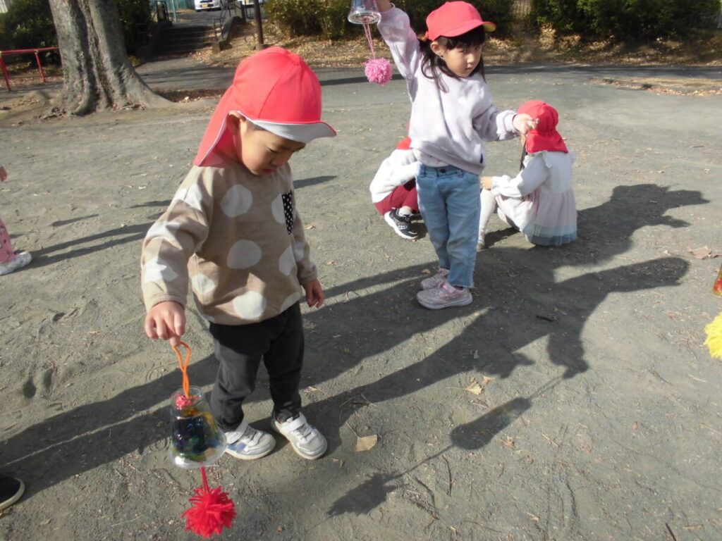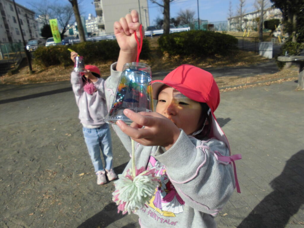 今日は自分達で作ったキラキラ✨ライトを通して光への興味や関心が膨らみ楽しむことができました。