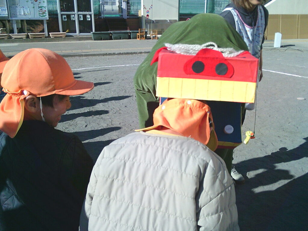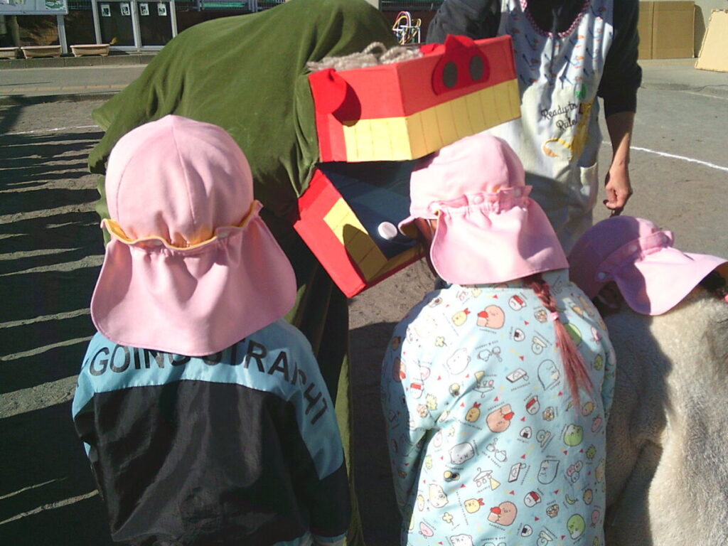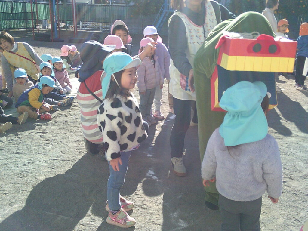 怖くて泣いてしまうお友だちもいましたが、無理せず遠くから・・・