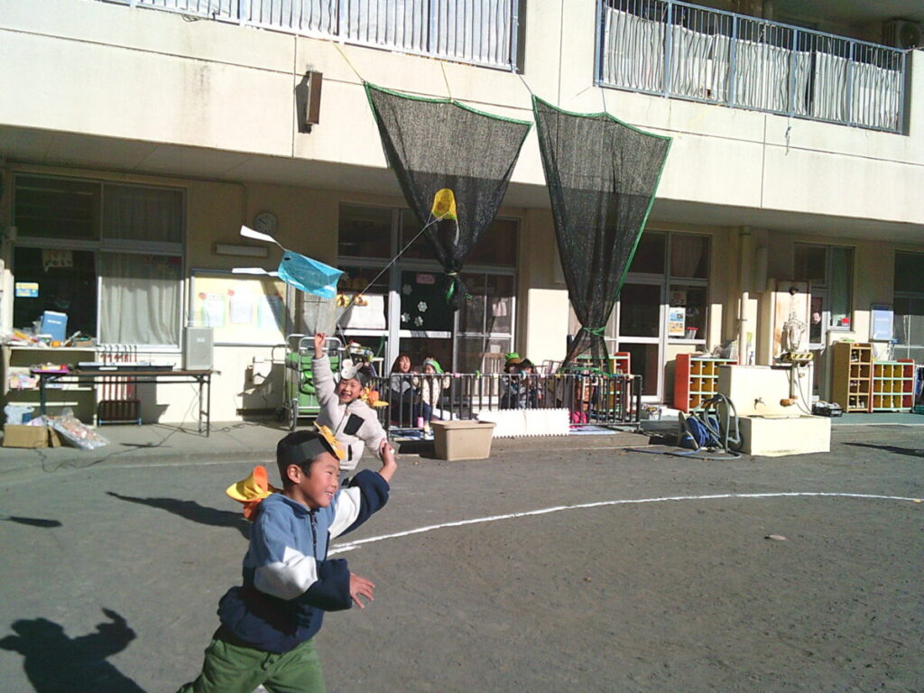 なかなか羽根が当たらず苦戦していましたが、楽しそうでした。