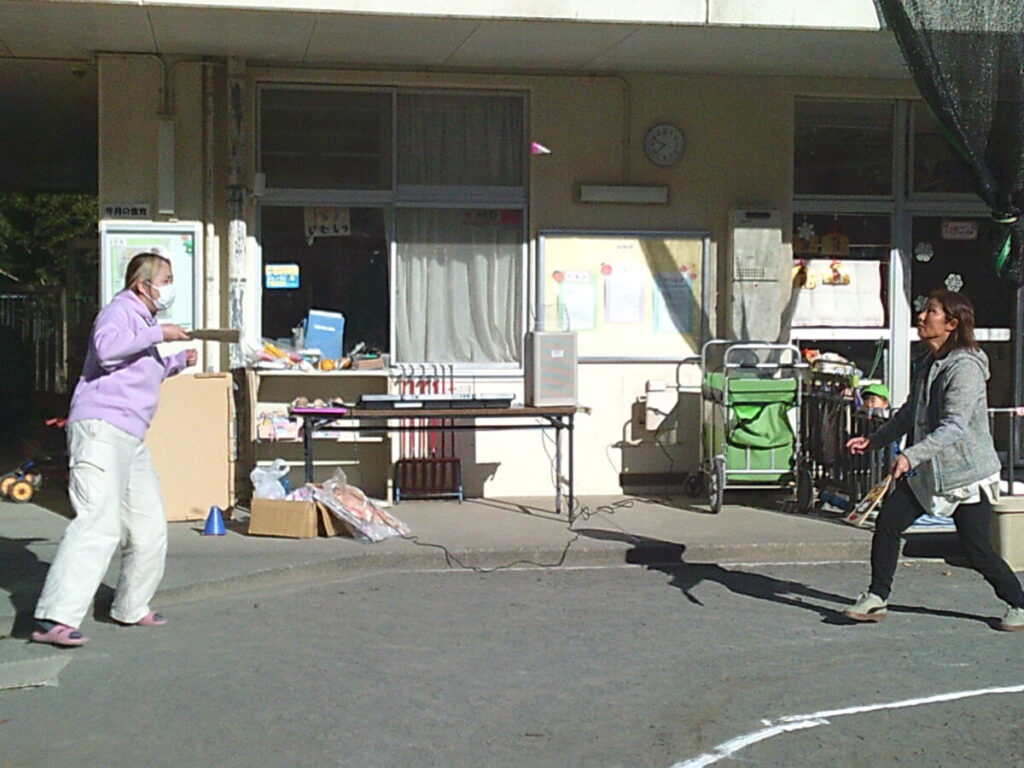 会終了後、さっそく子ども達は羽根つきで遊んでいました。
