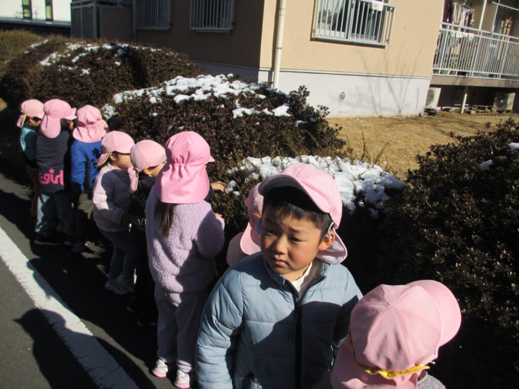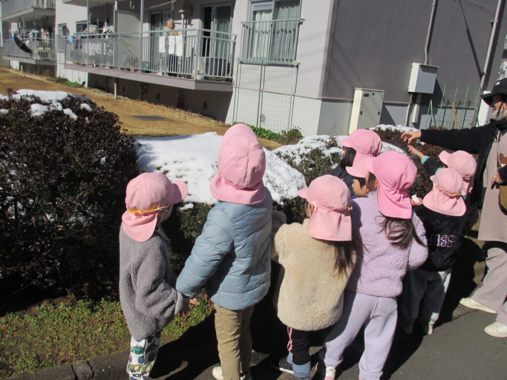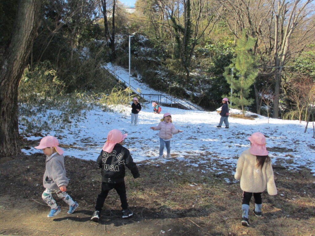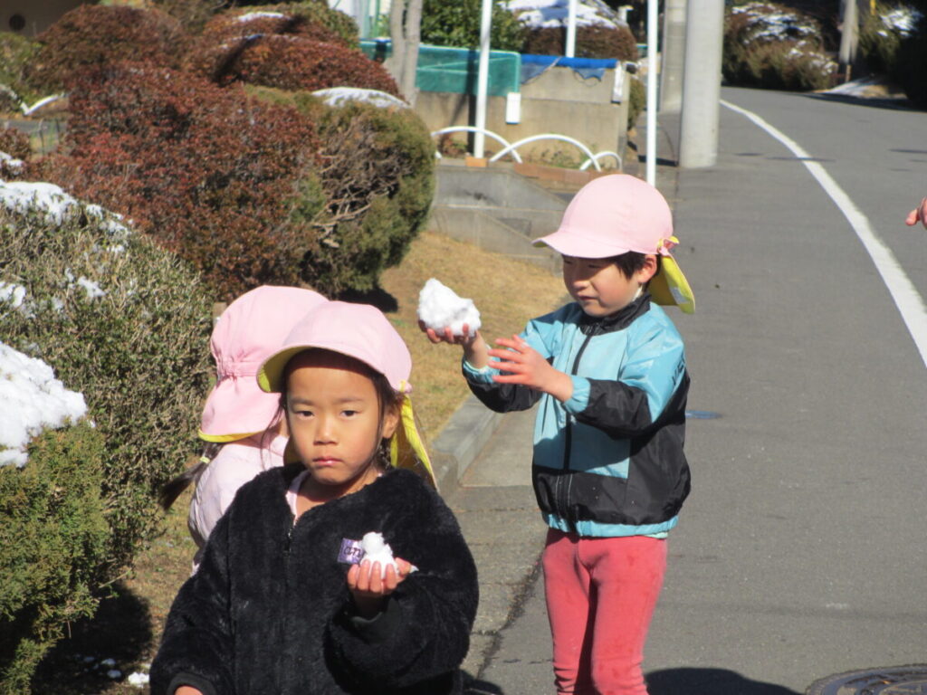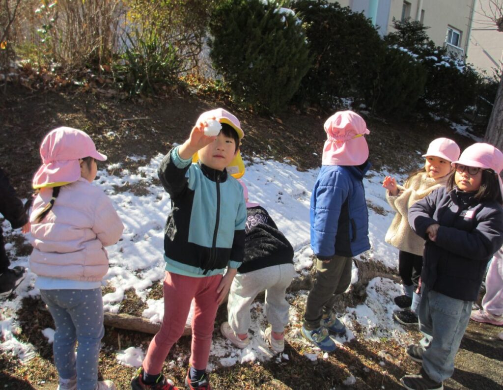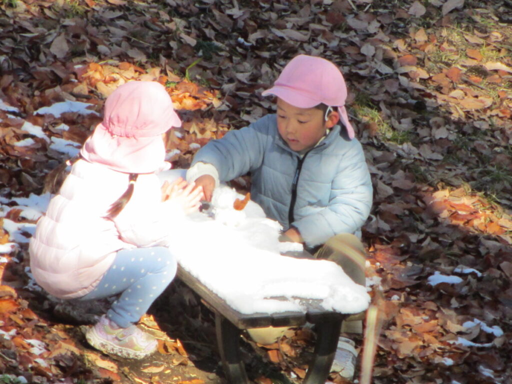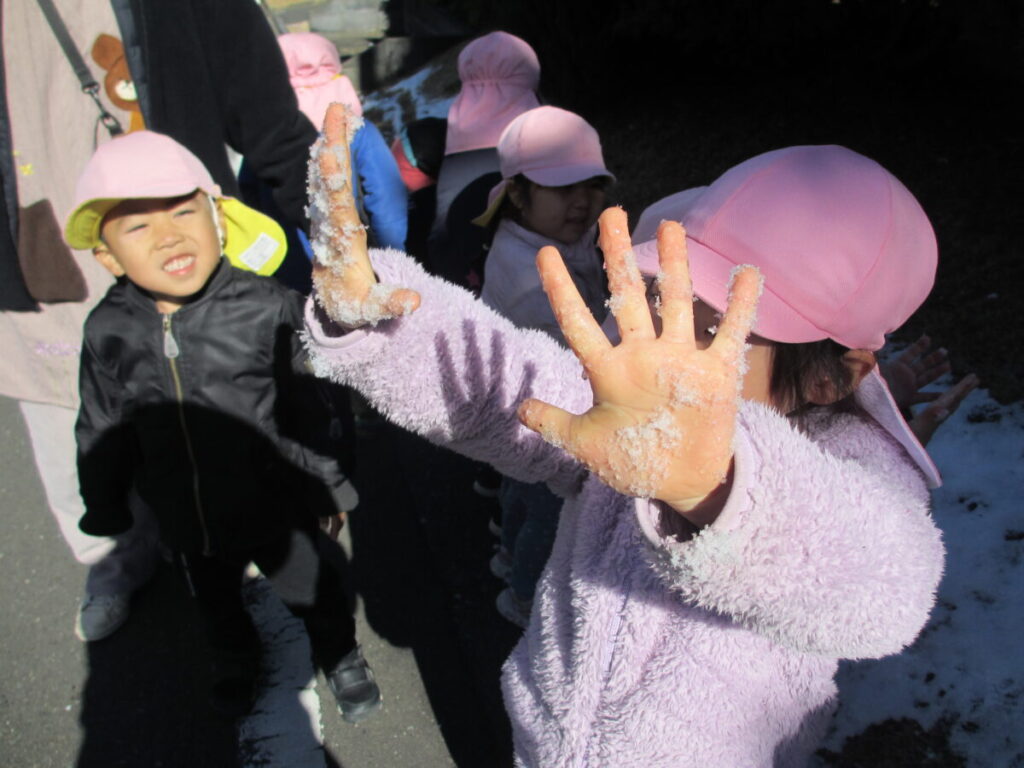 雪に触れながら、「つめたいね」「きれいだね」と目を輝かせながら、友だちと一緒に笑い合う姿が見られました。