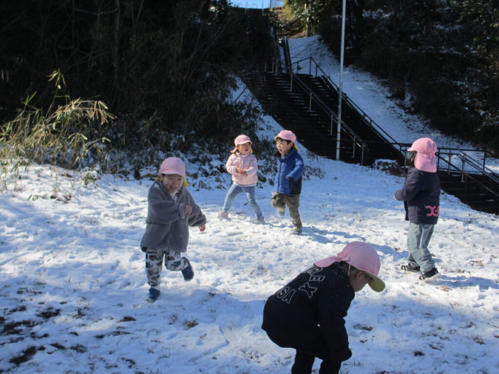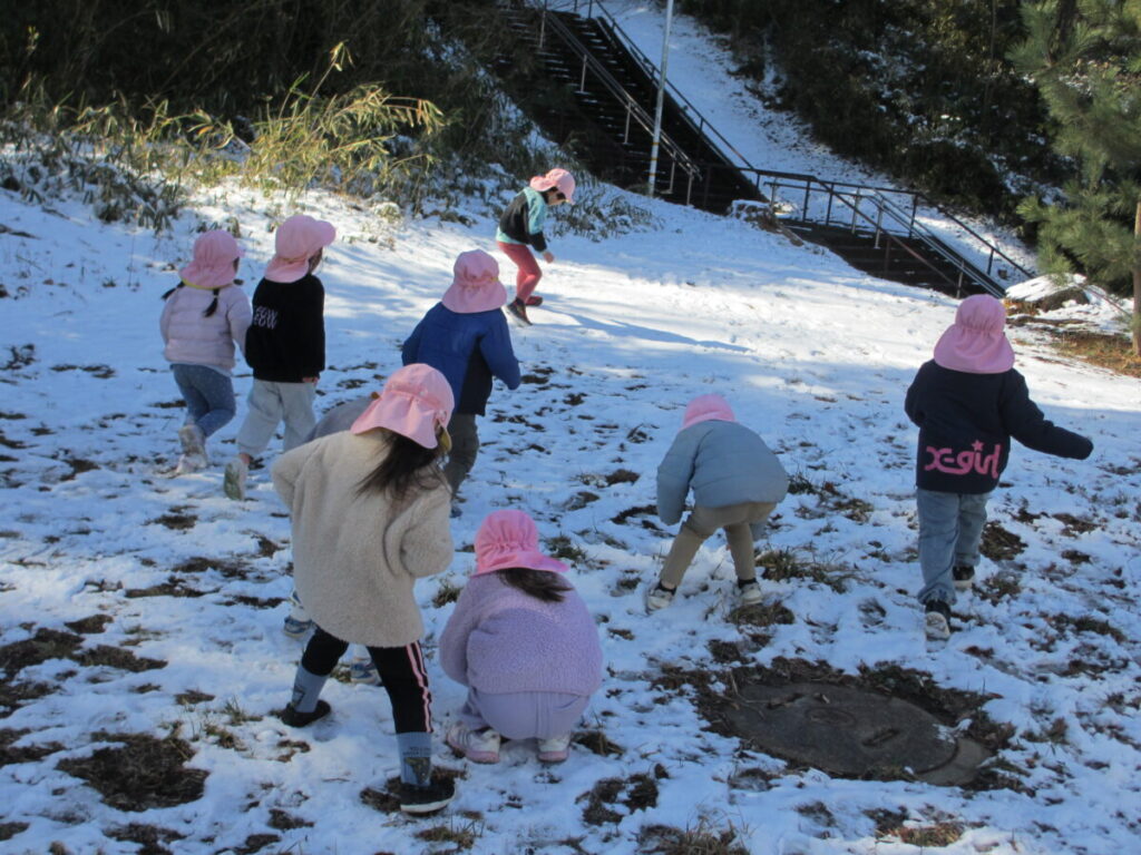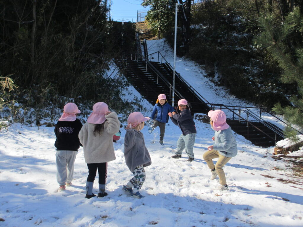 思いがけない雪に大喜びのいるか組の子どもたち。