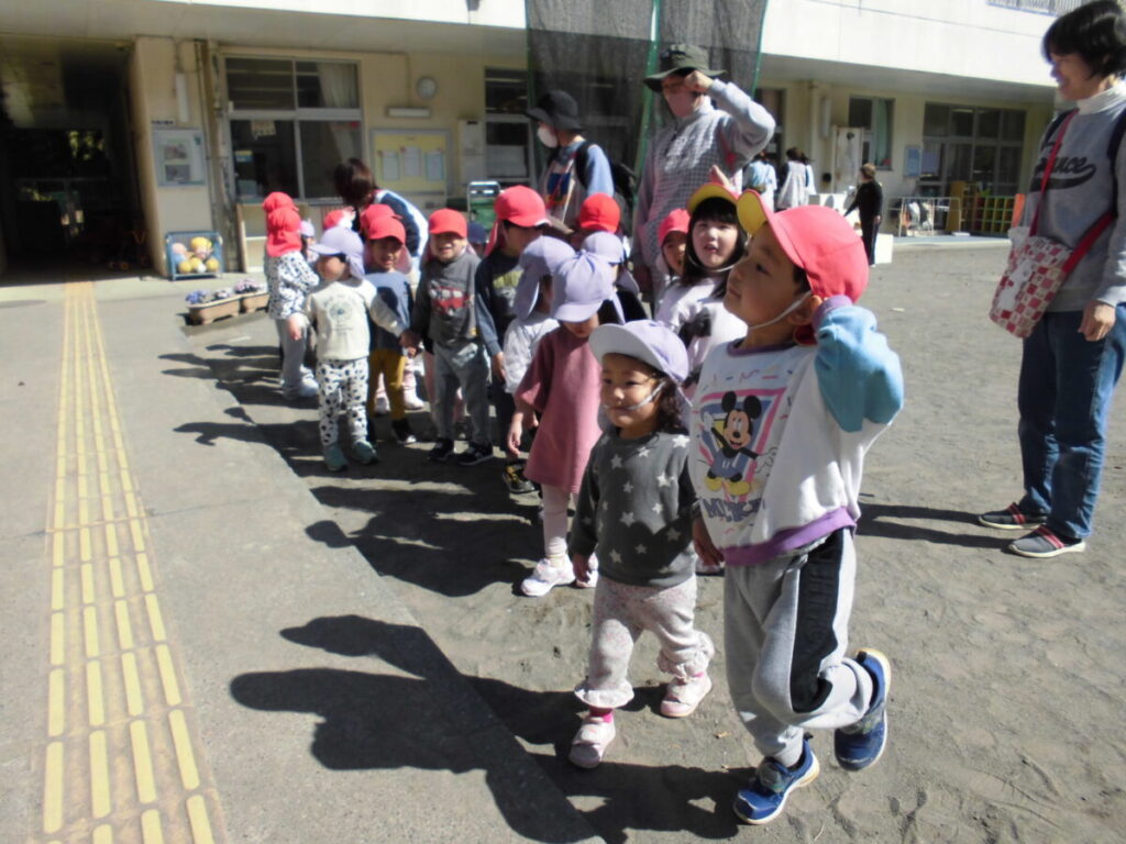 いつもは、いるか組さんとくじら組さんに守ってもらっているぺんぎん組さんですが、「今日はりんご組さんを守る!」とはりきって出発しました😊