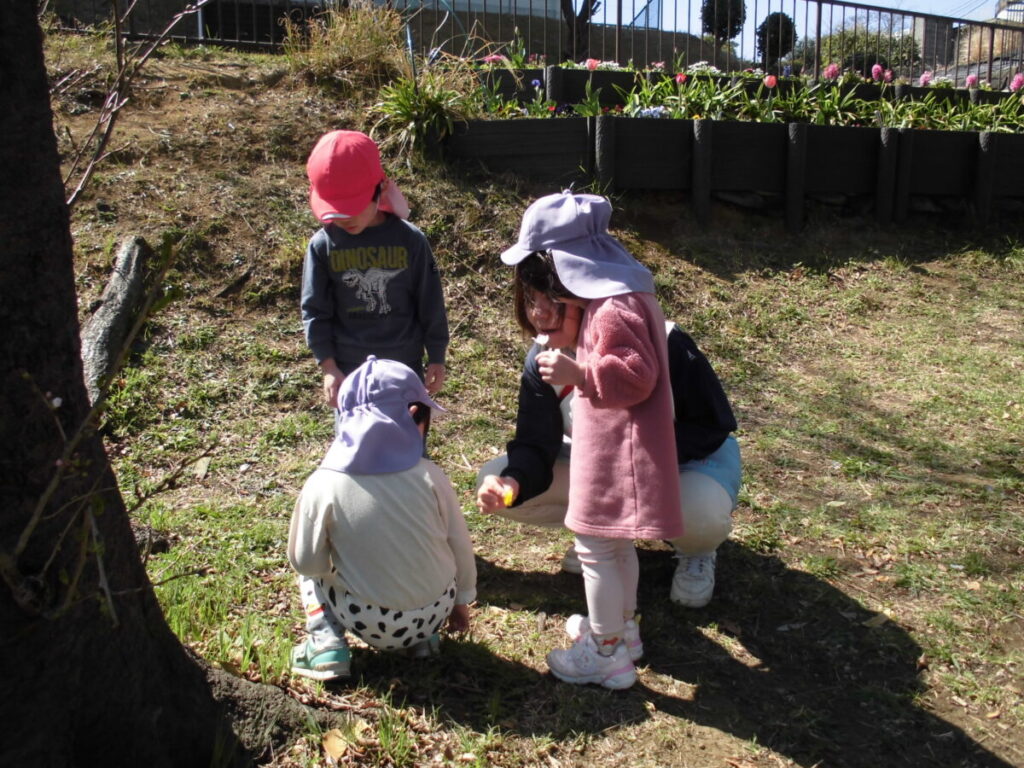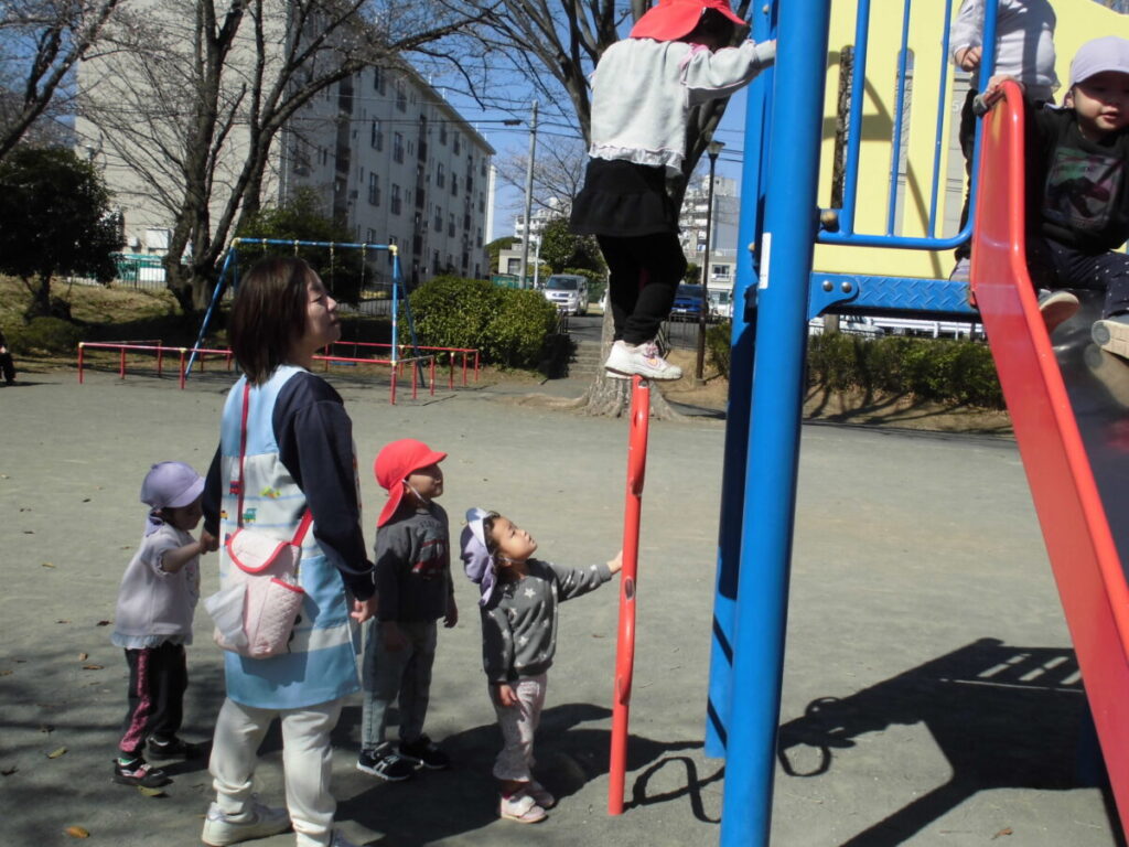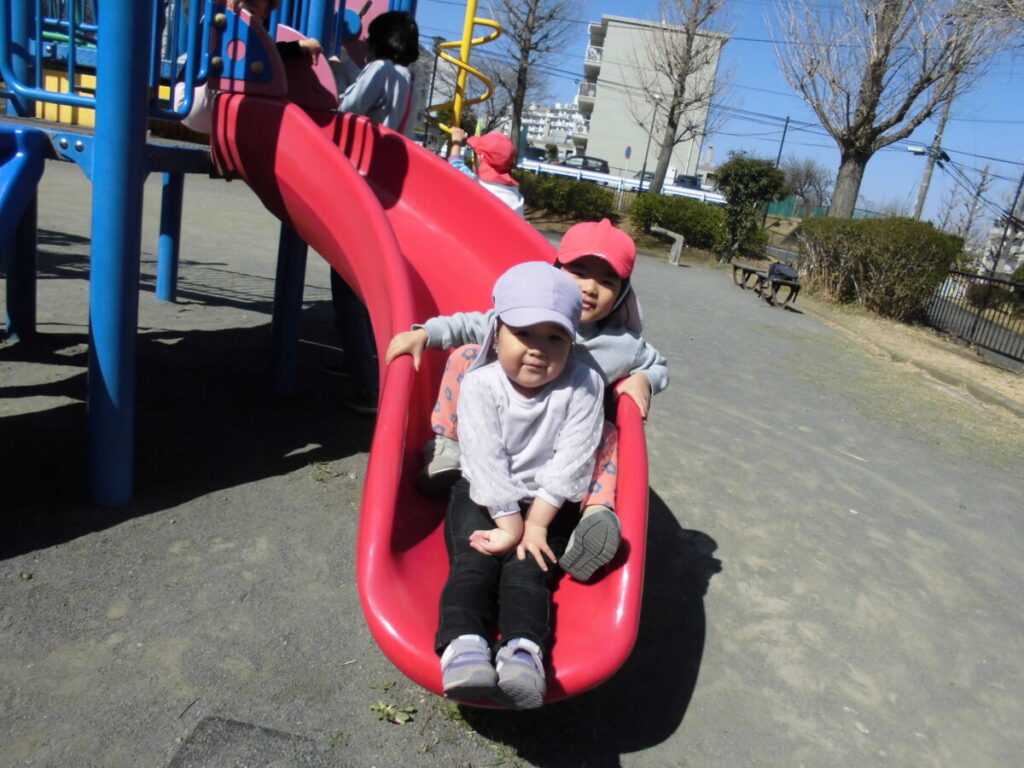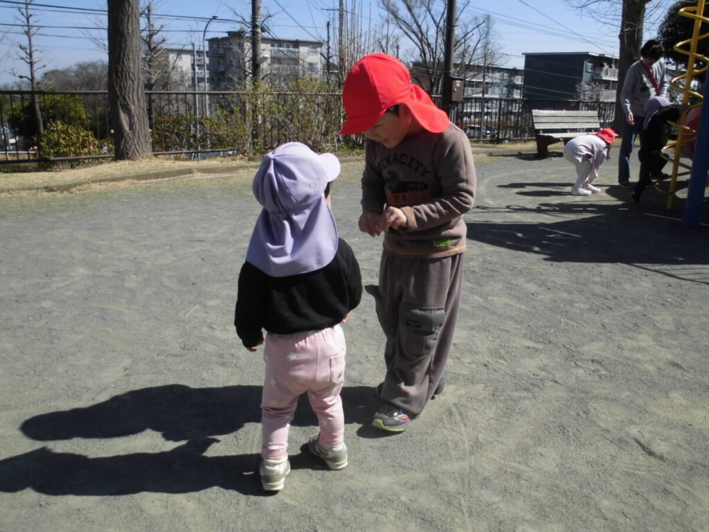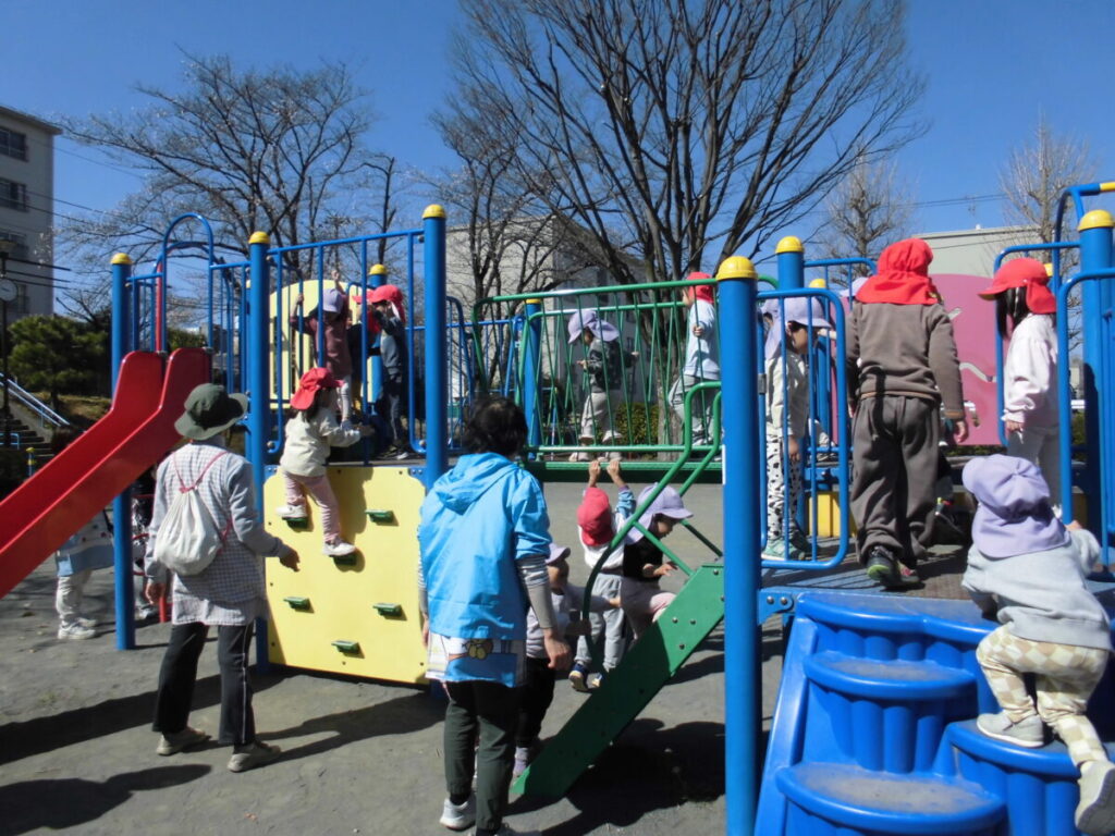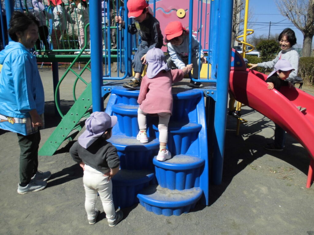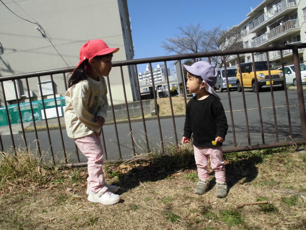 一緒に大型遊具で遊んだり、春の花探しをしたりして、とってもステキな時間を過ごすことができました。りんご組さんは予想していたより活発でお姉さん、お兄さんのする遊具もやろうとする『チャレンジャー』でした😊ぺんぎん組さんは車道側を歩き守ってあげたり、公園で危なくないように見守ってあげたりと立派な『まもるんじゃー』でした😊また一緒に行こうね♡