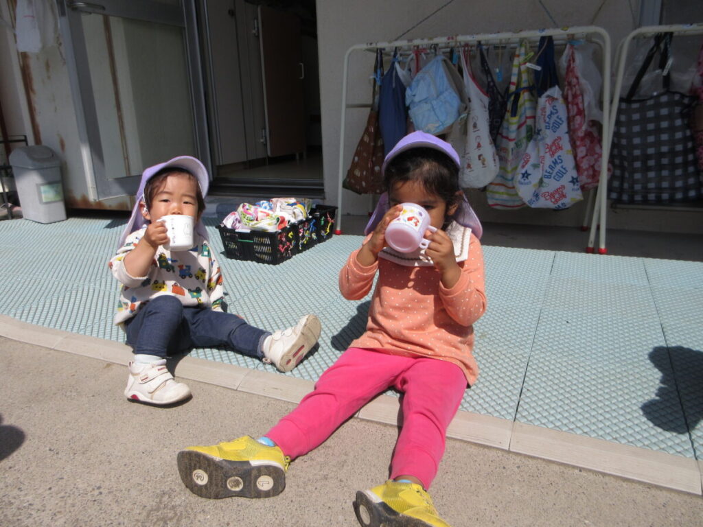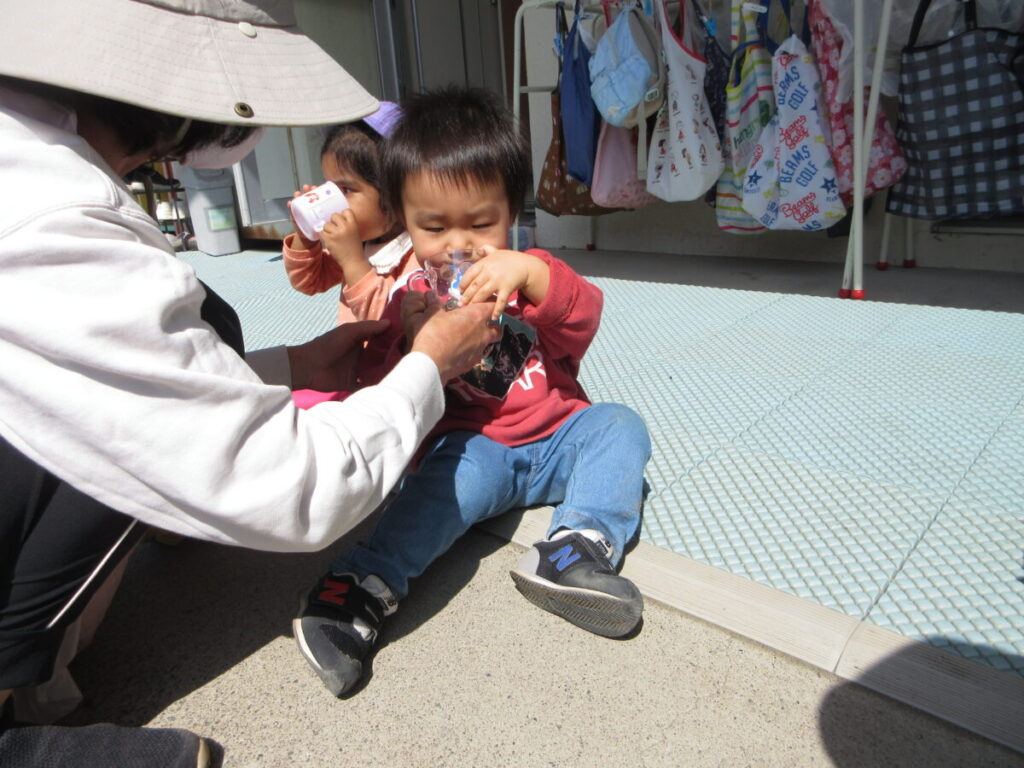 おやつを食べたら、みんなで園庭に行ってみよ~~