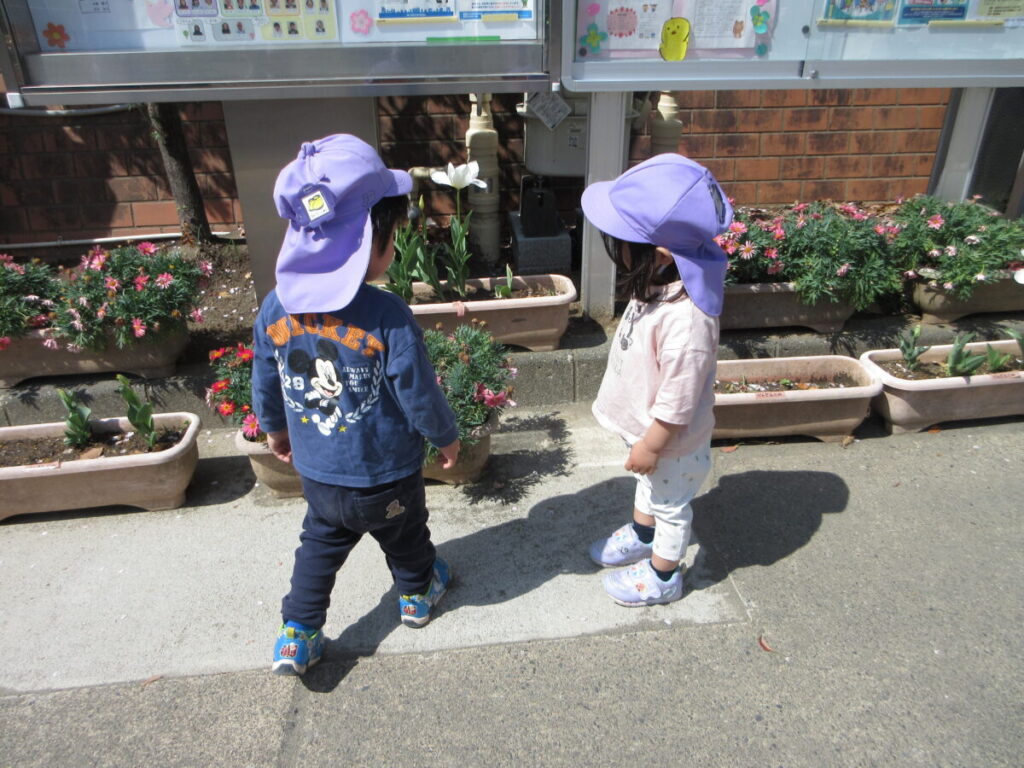 見てみて~ チューリップが咲いてるよ~! いいにおいするかな~(*‘∀‘)