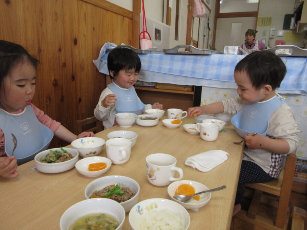 園庭遊びを満喫したら お部屋に入ってお給食です