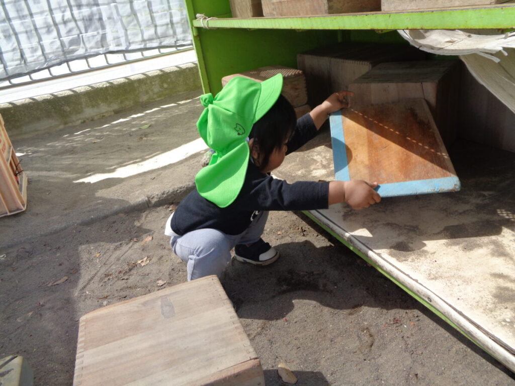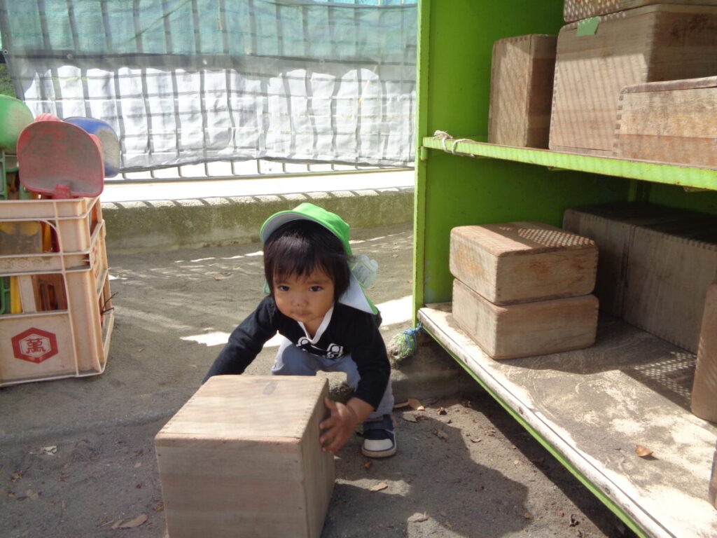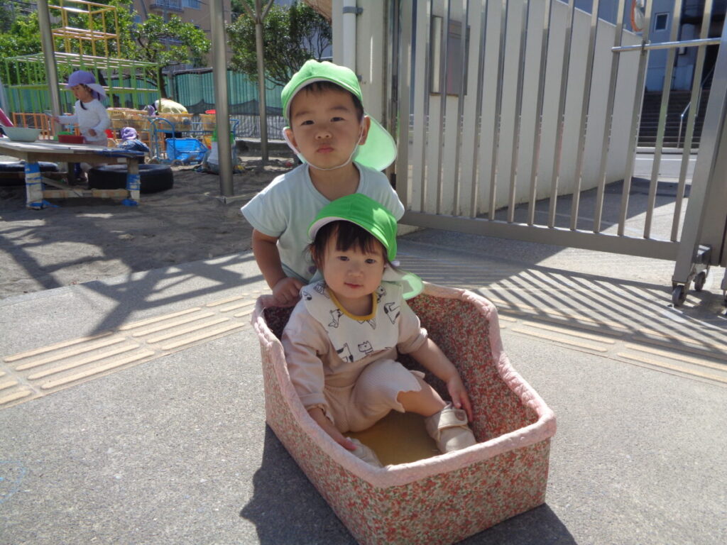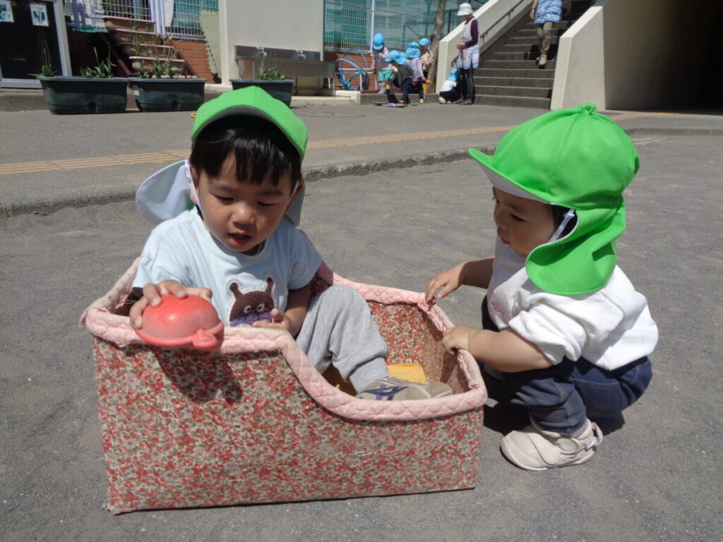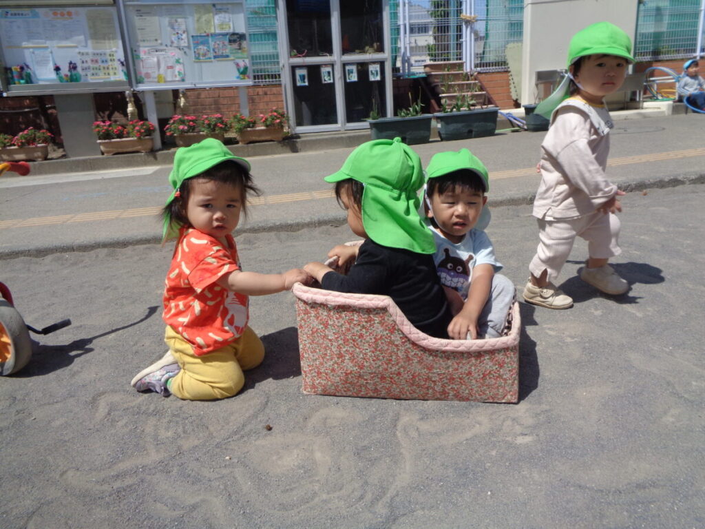 幼児クラスのお兄さんやお姉さんに押してもらって遊んだ箱車。